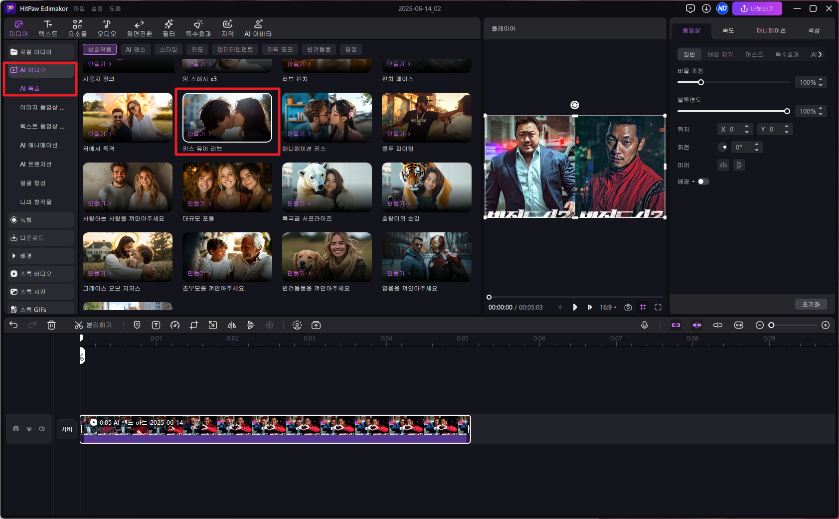 AI 영상 제작을 위한 다양한 특수효과 템플릿 제공