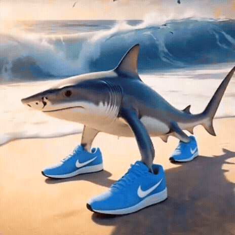 요즘 나이키 신발 신은 상어 밈입니다. 댄스 춤을 추는 상어로 해줘.