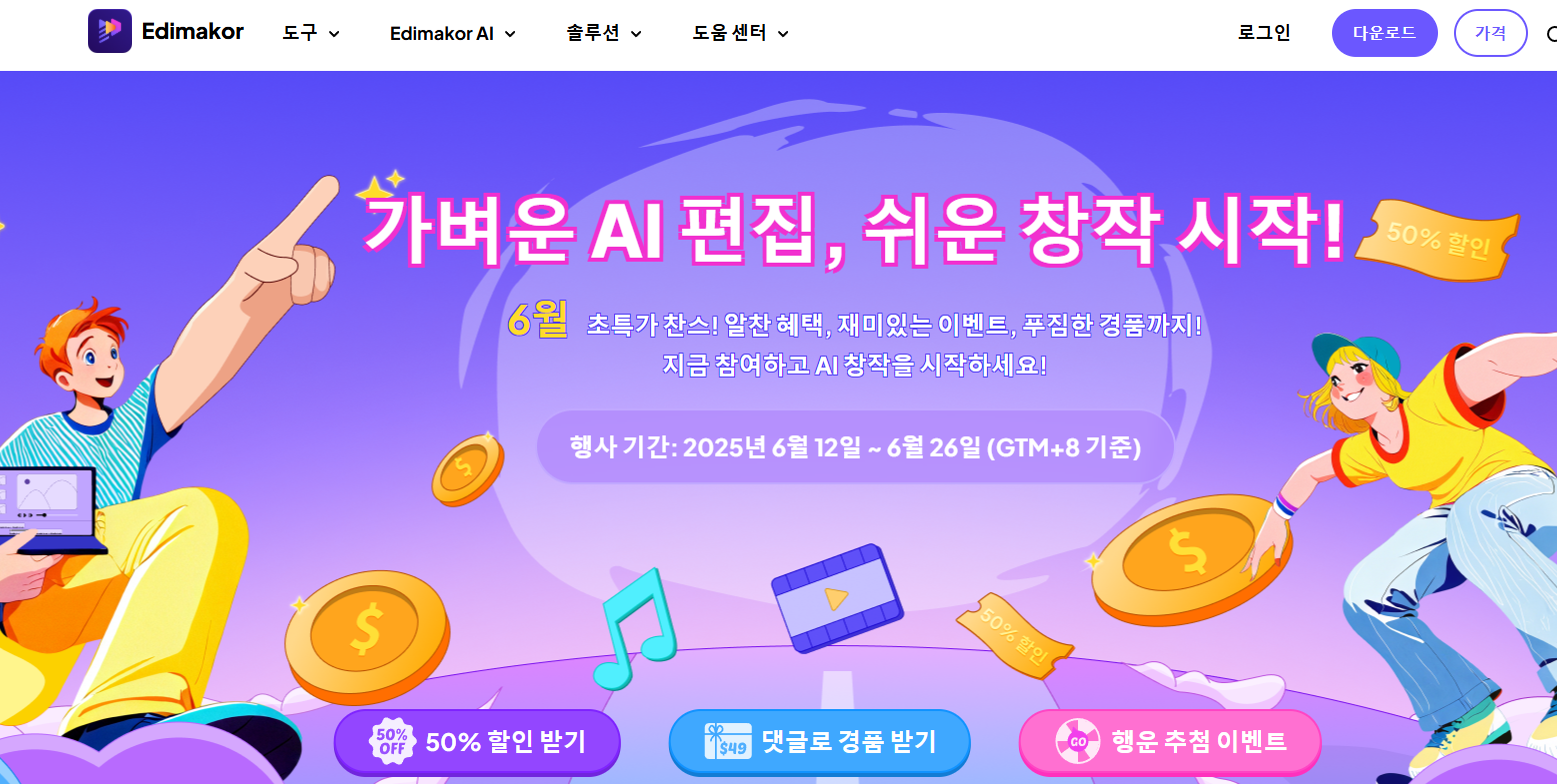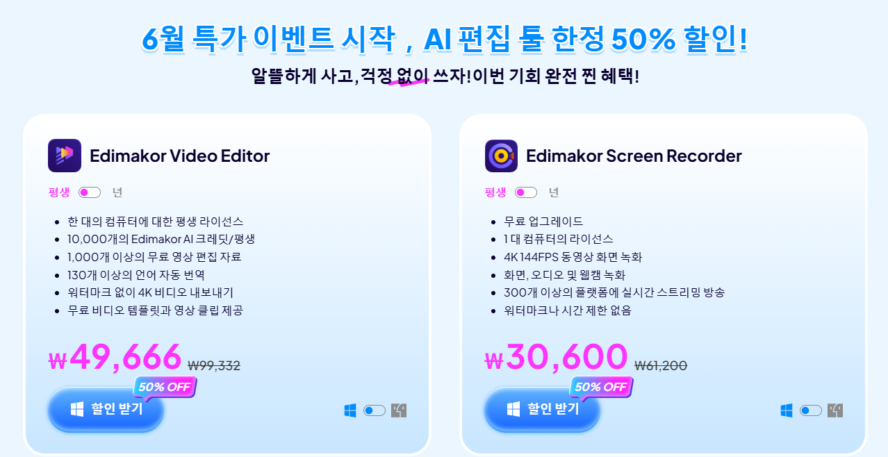 6월 한정 세일|Edimakor AI 영상 편집 프로그램 50% 특가