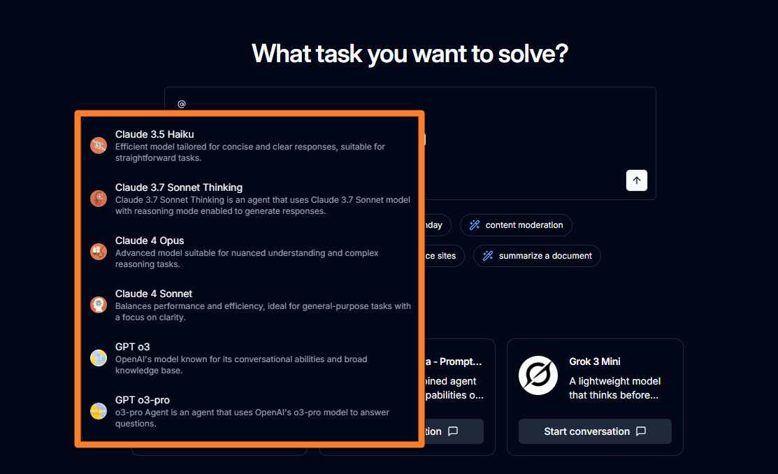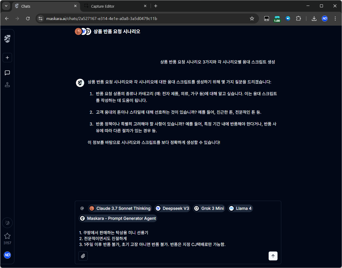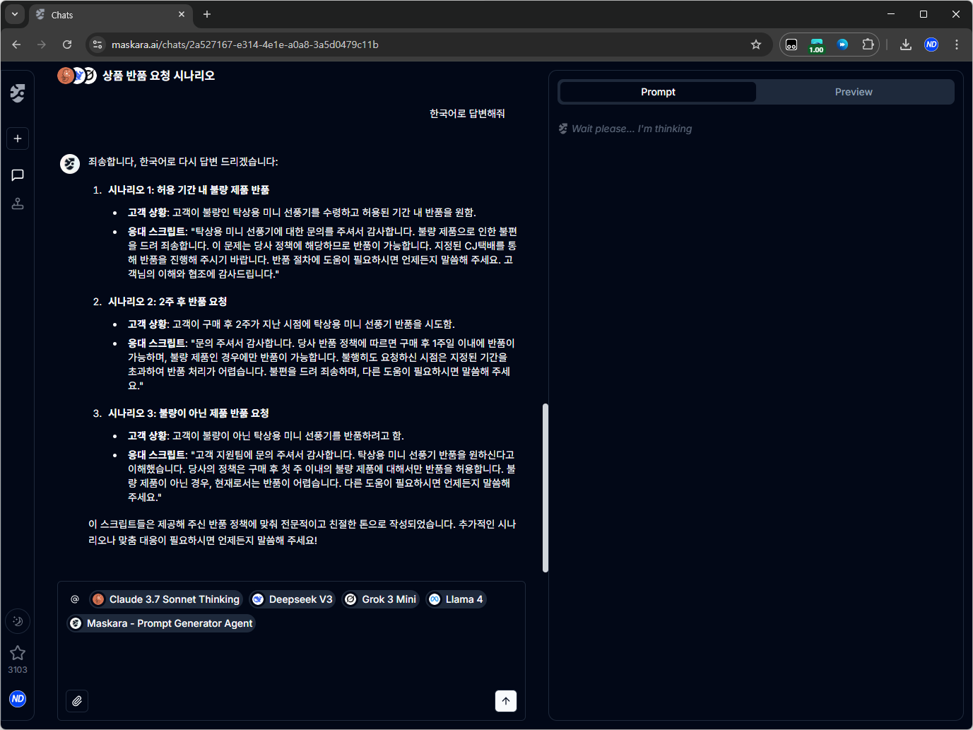 그리고 Maskara - Prompt Generator Agent, 클로드 AI, 딥시크(Deepseek V3), 라마(Liama 4) 등을 추가했습니다.