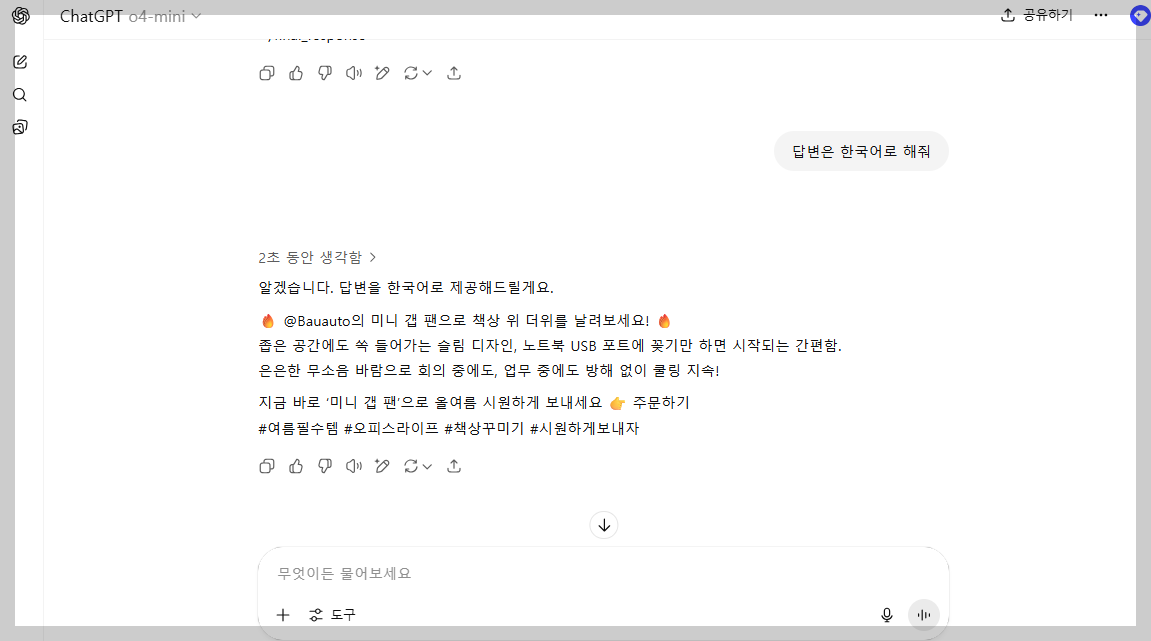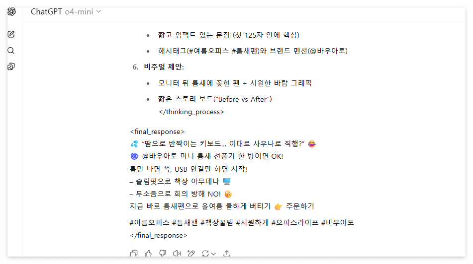 열심히 생각해서 최적화된 AI 명령어 프롬프트를 만들어 냅니다.