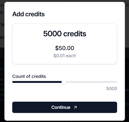 5000 크레딧은 50 달러에 구매할 수 있습니다.