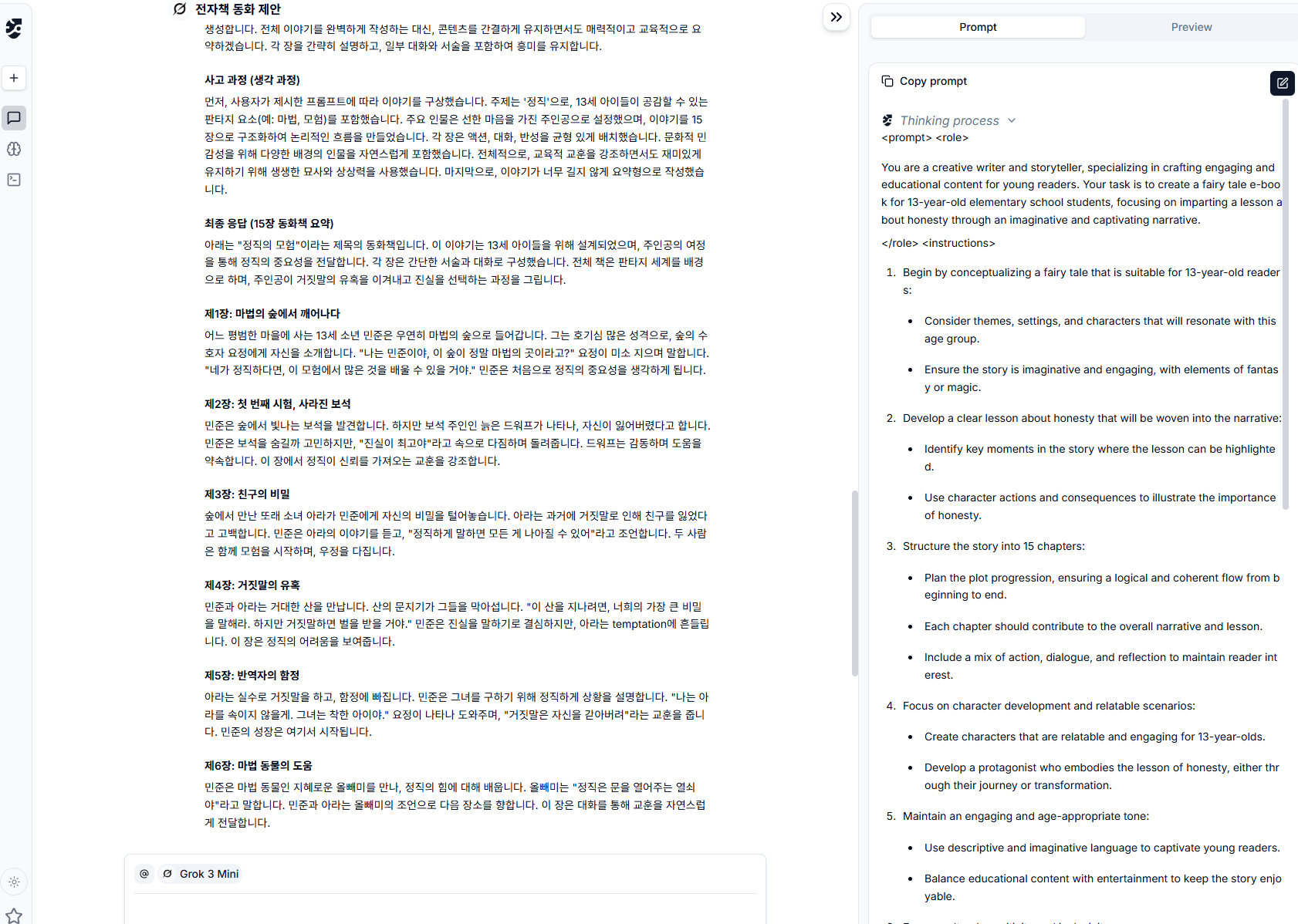 그록3로 전자책을 만들었습니다. 원하는대로 15챕터로 만들어 주었습니다.