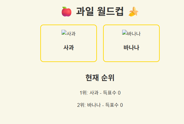정말 금방 과일 월드컵 이상형 사이트를 만들었습니다.