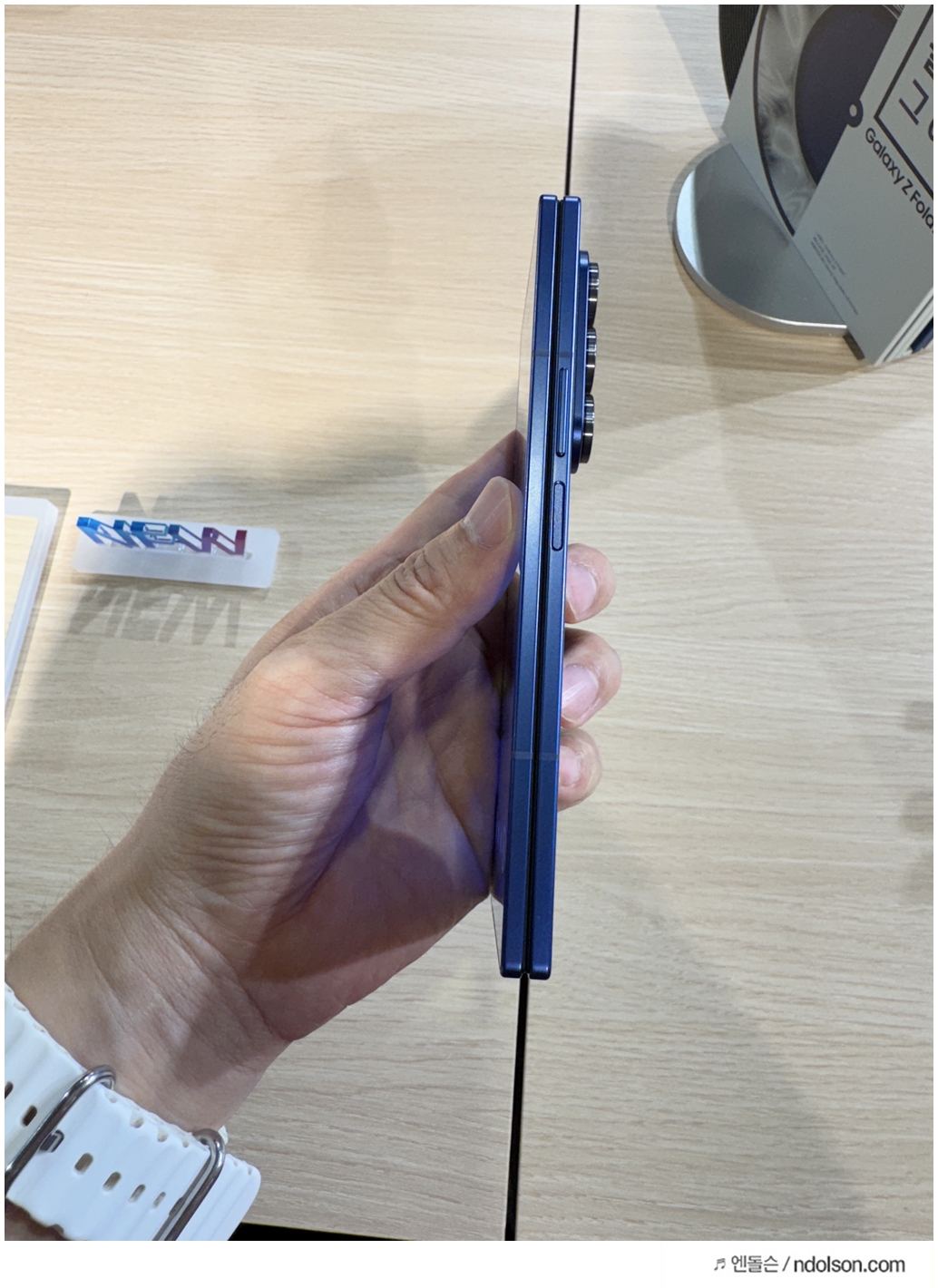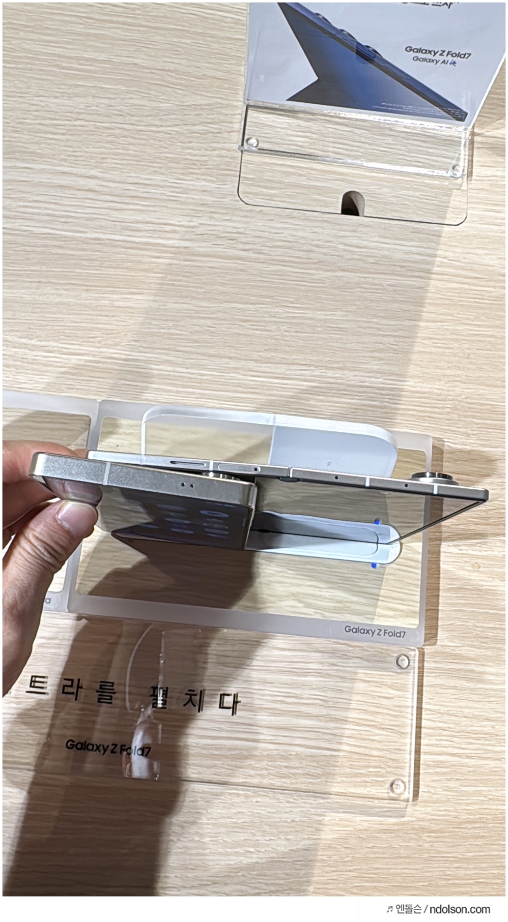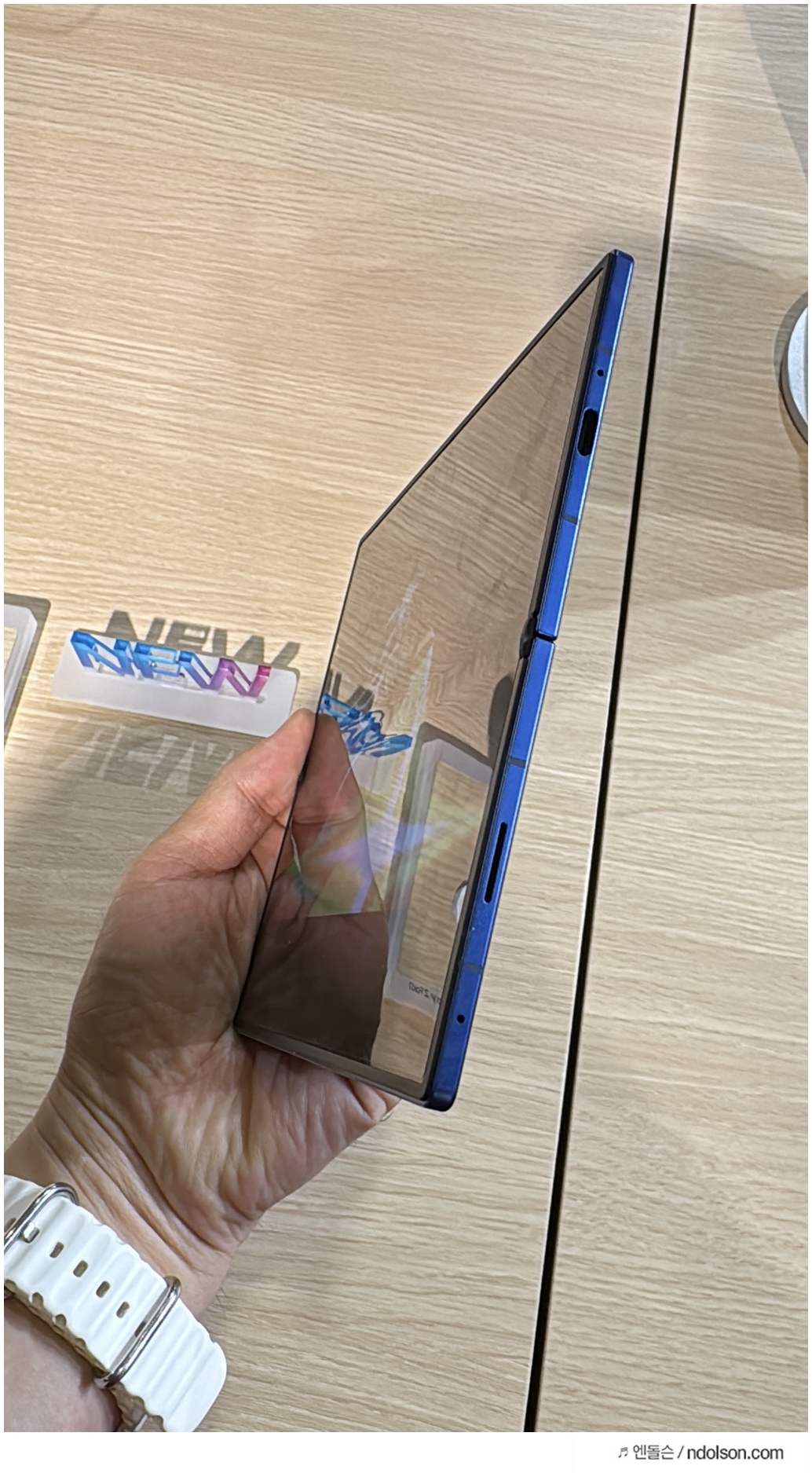 실물로 본 Fold7은 정말 얇고 가벼워 놀랄 정도. "이렇게까지 가볍고 얇게 만들었는데 화면은 여전히 태블릿처럼 넓다"는 인상이 강했습니다. 이전에 쓸 때 너무 무거워서 중고나라에 폴드 팔았거든요. 휴대성이 크게 좋아져 적극 추천할 만한 개선 포인트가 되었다고 봅니다.