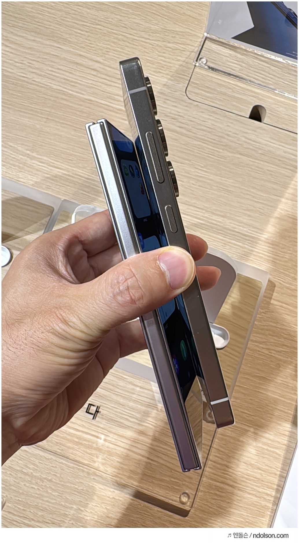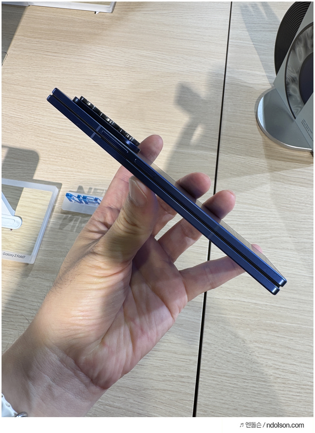 | Galaxy Z Fold7 | 8.9 mm | 4.2 mm | 215 g | 현 세대 자사 최슬림·경량 폴더블 지향 |