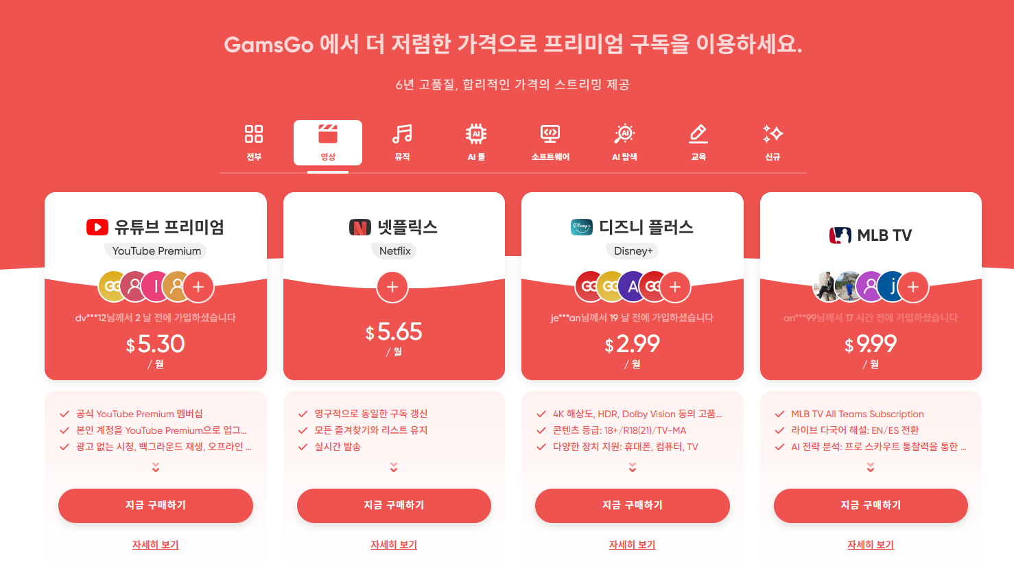 번거럽다면 겜스고 공유계정을 통해서 저렴하게 사용할 수 있습니다.