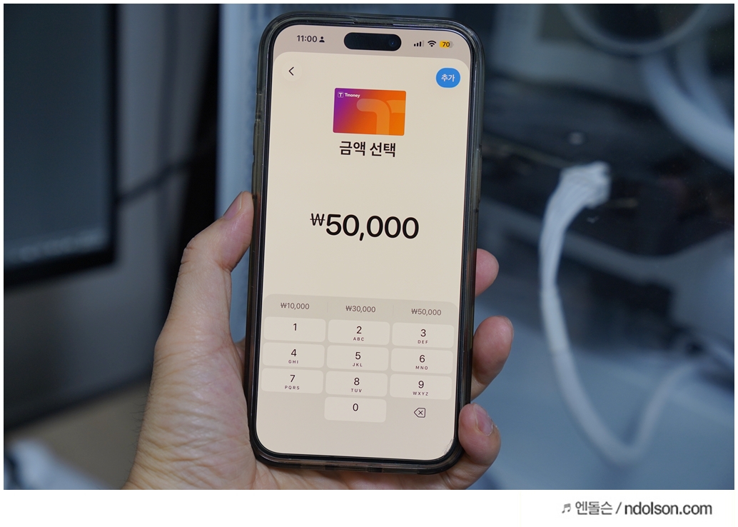 애플 지갑 앱에서 티머니 충전 시: