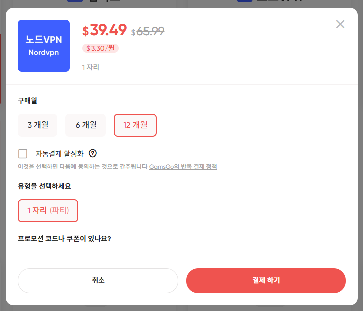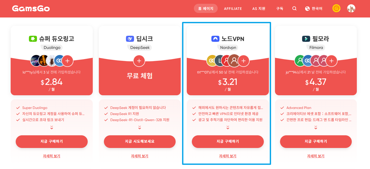 노드 VPN을 찾아 구매하기를 눌러줍니다.
