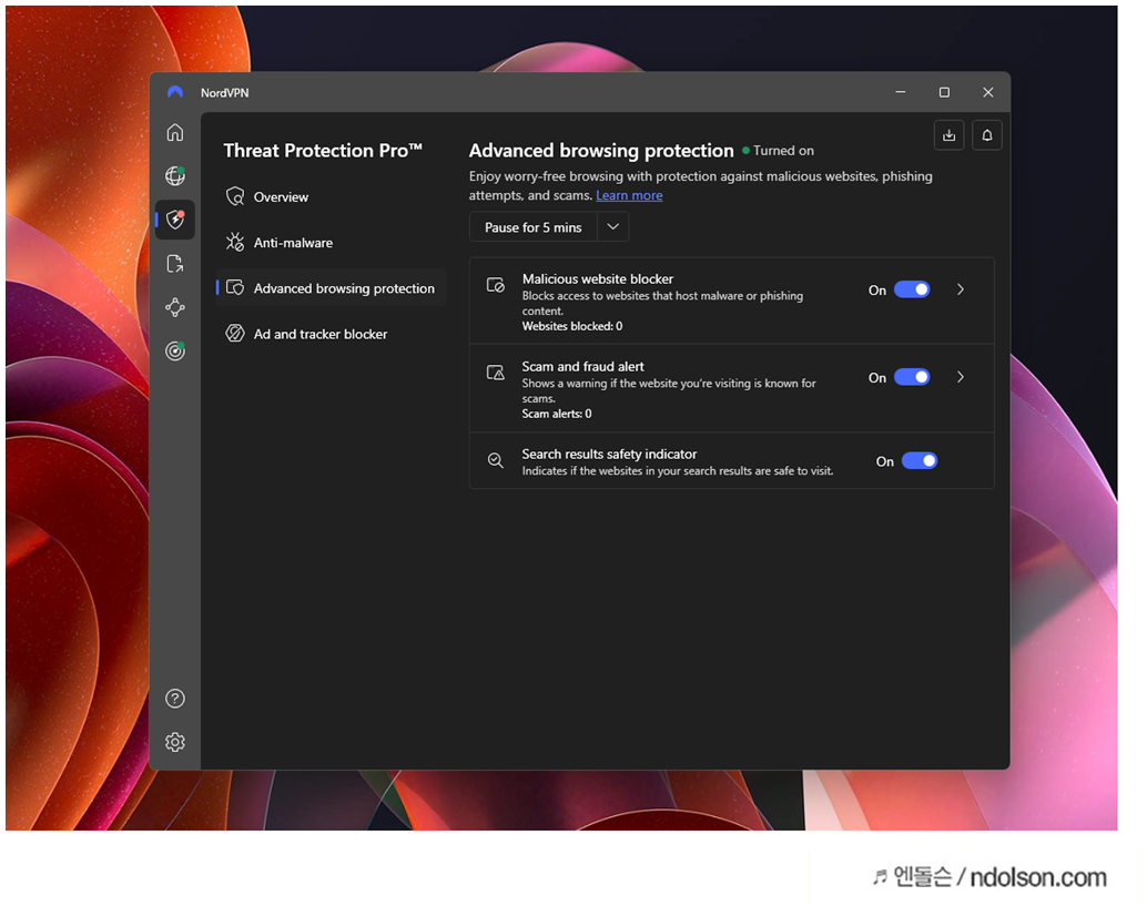 위협 보호 기능 악성 웹사이트, 피싱 사이트, 광고 및 추적기를 실시간으로 차단하는 통합 보안 솔루션입니다. 별도의 백신 프로그램이나 광고 차단기 없이도 안전한 브라우징이 가능합니다.
