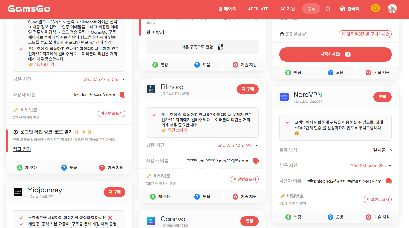 필자는 이미 많은 구독을 사용하고 있는데요. 각 구독마다 사용법은 조금씩 다릅니다.