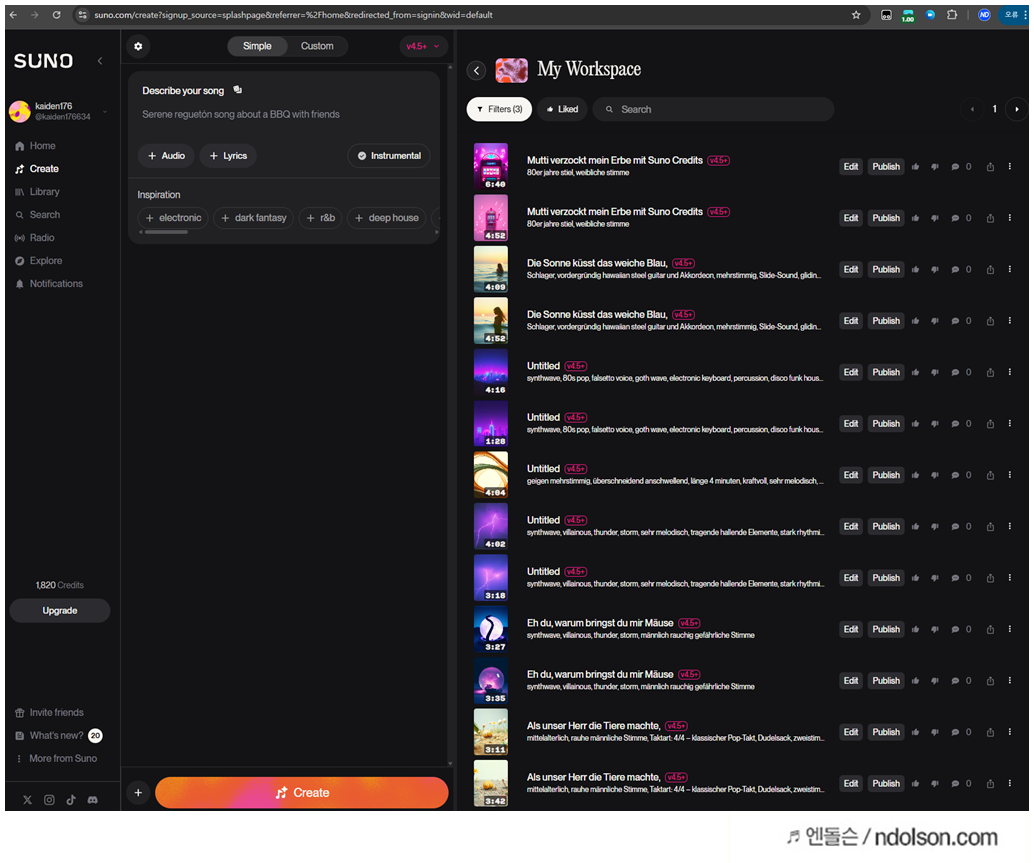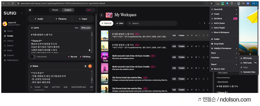어린이 노래부터 여름노래까지 suno AI로 만들었습니다. 당연히 유료를 사용했습니다.
