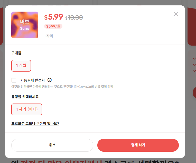 SUNO AI 할인코드 구독 가격할인 하는 방법