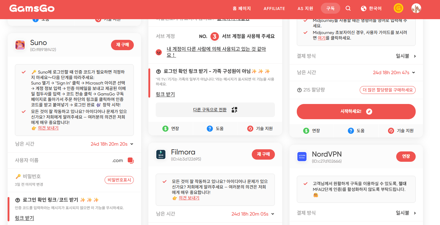 유료 구독하고 나면 자신의 구독에서 Suno 로그인 정보를 얻을 수 있습니다.