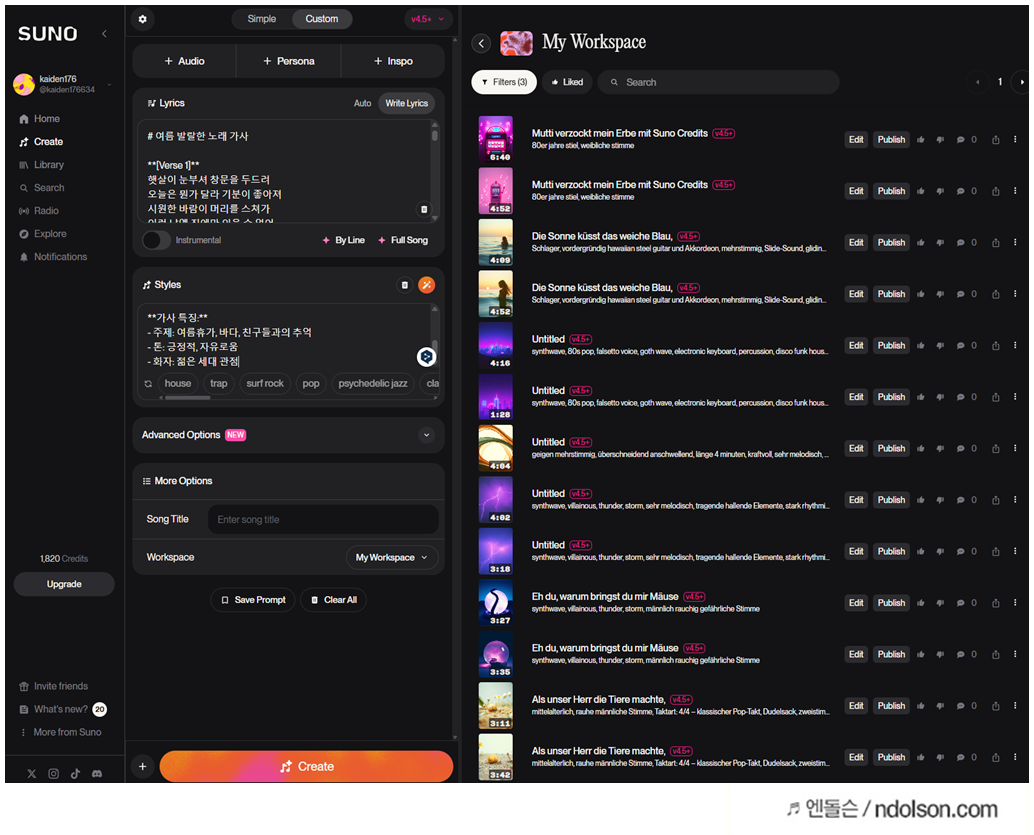 어린이 노래부터 여름노래까지 suno AI로 만들었습니다. 당연히 유료를 사용했습니다.