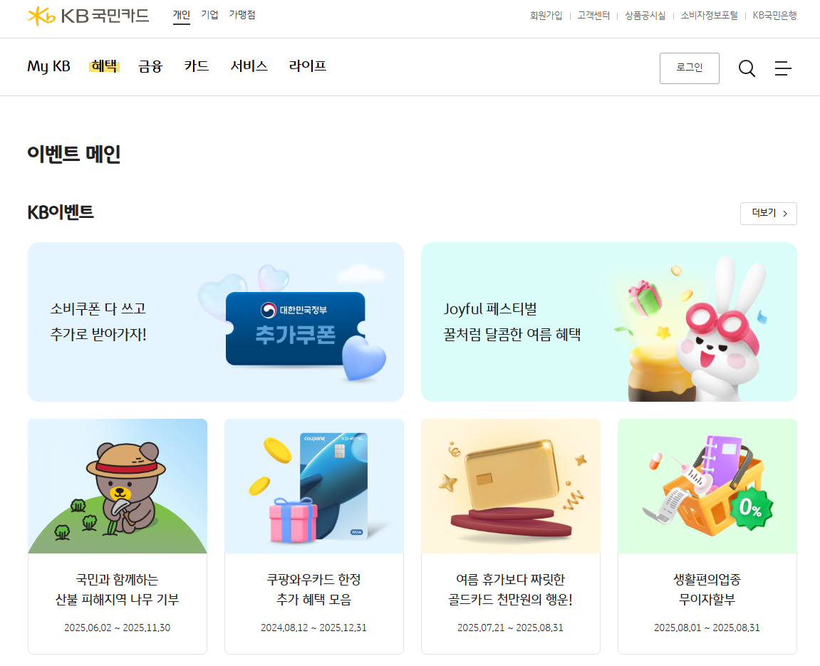 - 신용카드업계 사정 또는 KB국민카드 영업 정책 변경 시 이벤트 내용이 중단·변경될 수 있습니다.