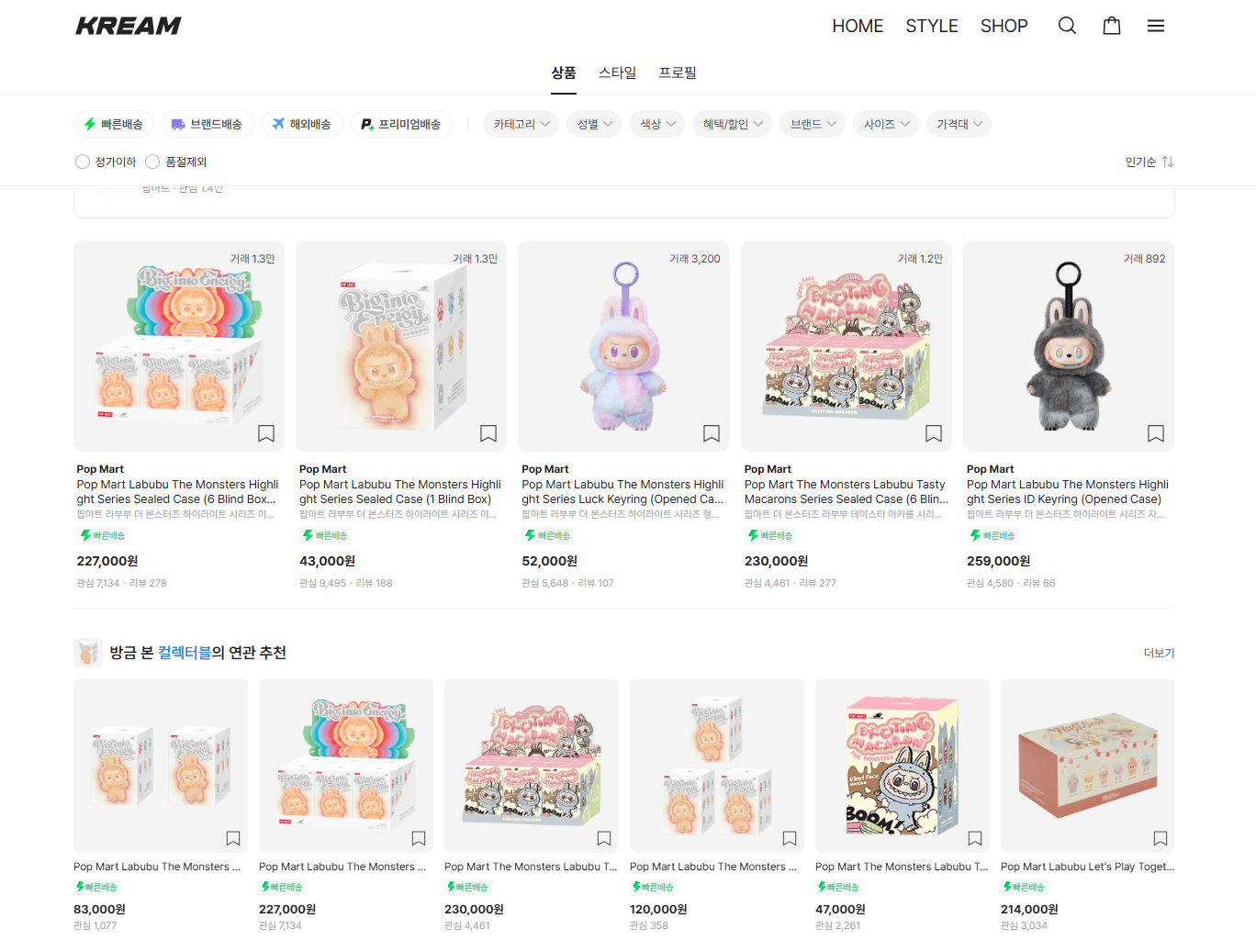 반스(Vans)와 협업한 한정판 라부부는 정가 599위안(약 11만원)에서 1만4839위안(약 280만원)까지 올랐다. 국내 리셀 플랫폼 크림에서는 인기 모델이 최고 109만9000원에 거래되기도 했다.