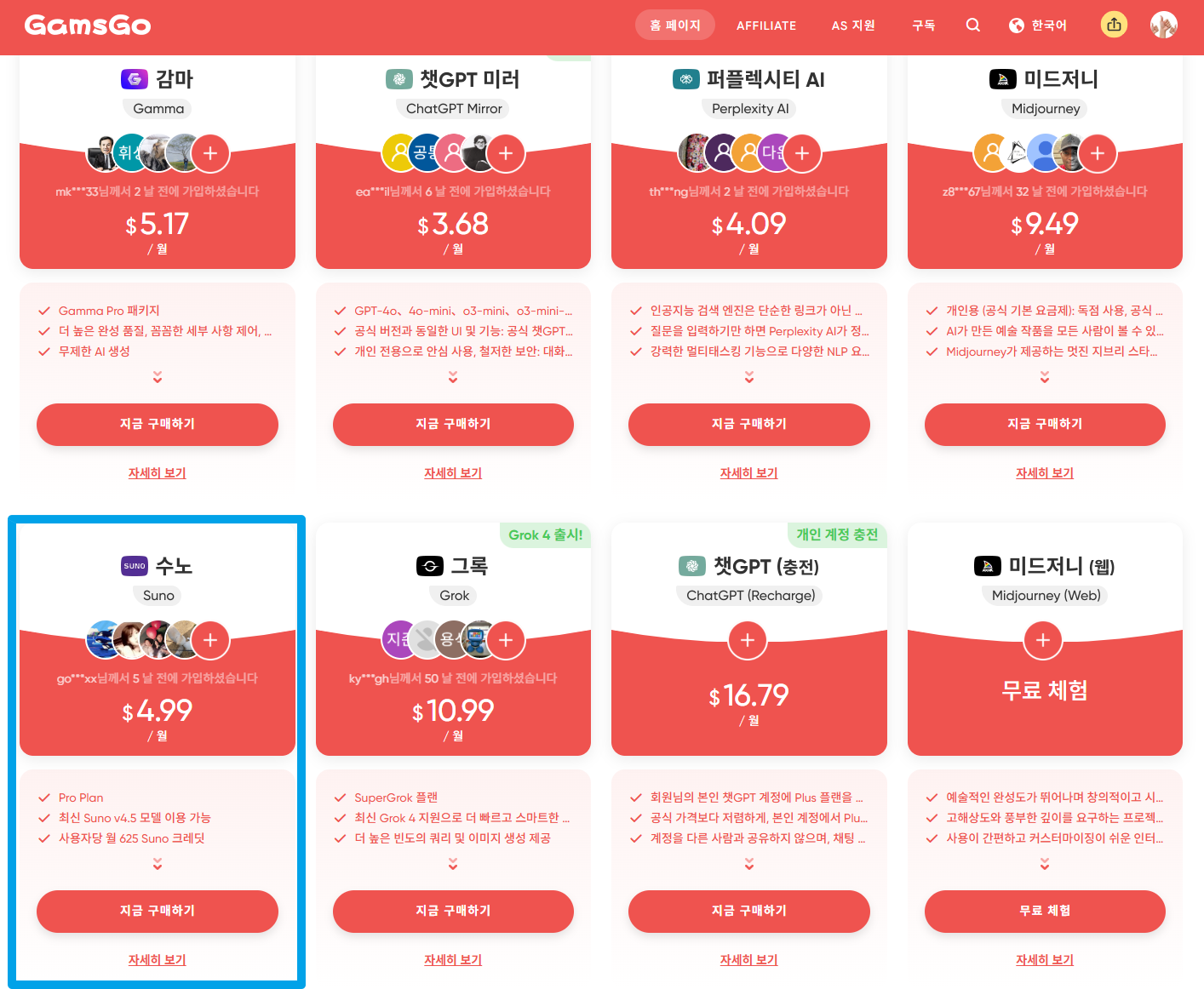 수노(Suno) 사이트를 [지금 구매하기]를 눌러줍니다.