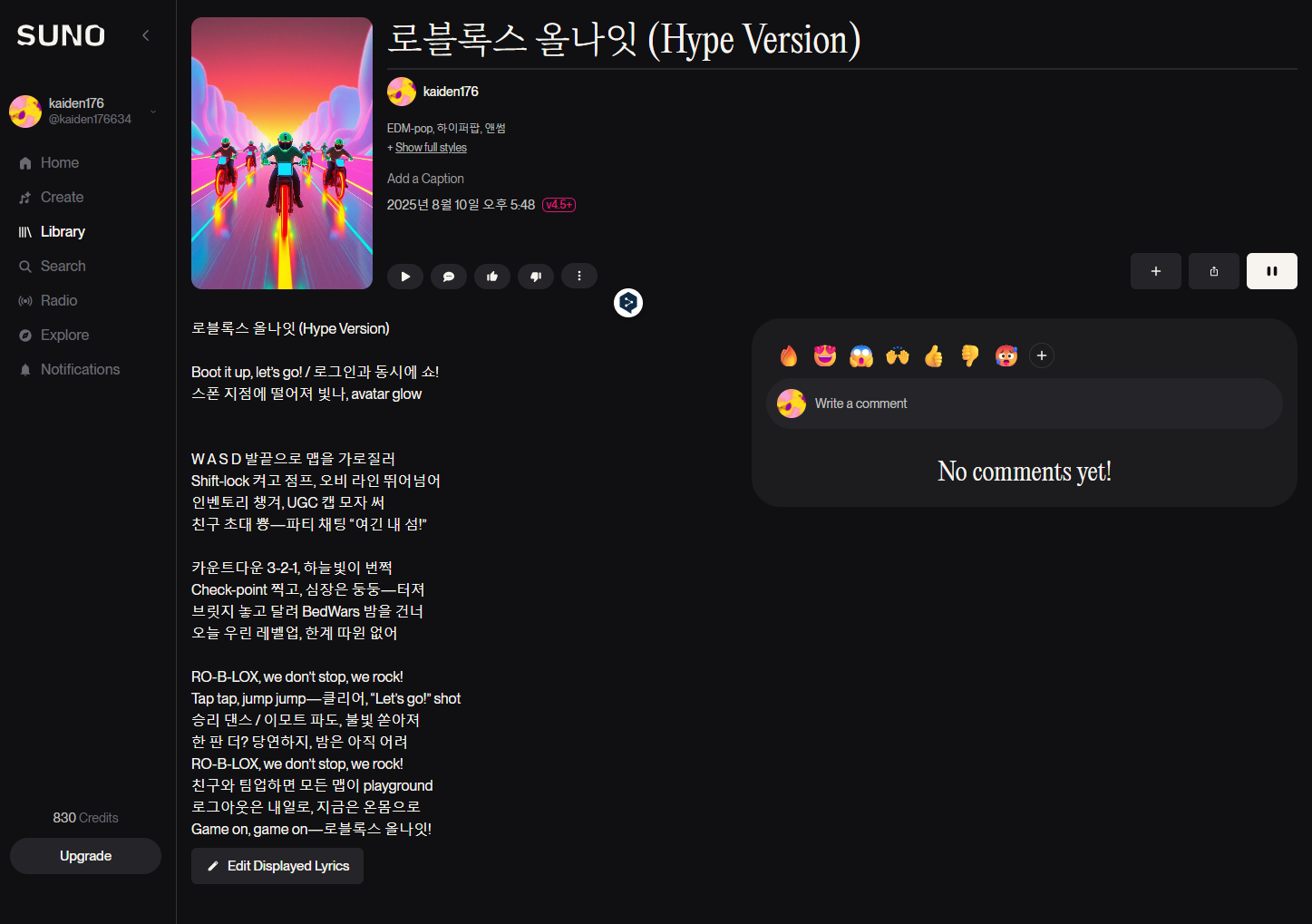 필요하면 특정 게임(예: Brookhaven, Doors 등) 버전으로 가사 맞춤도 해줄게.