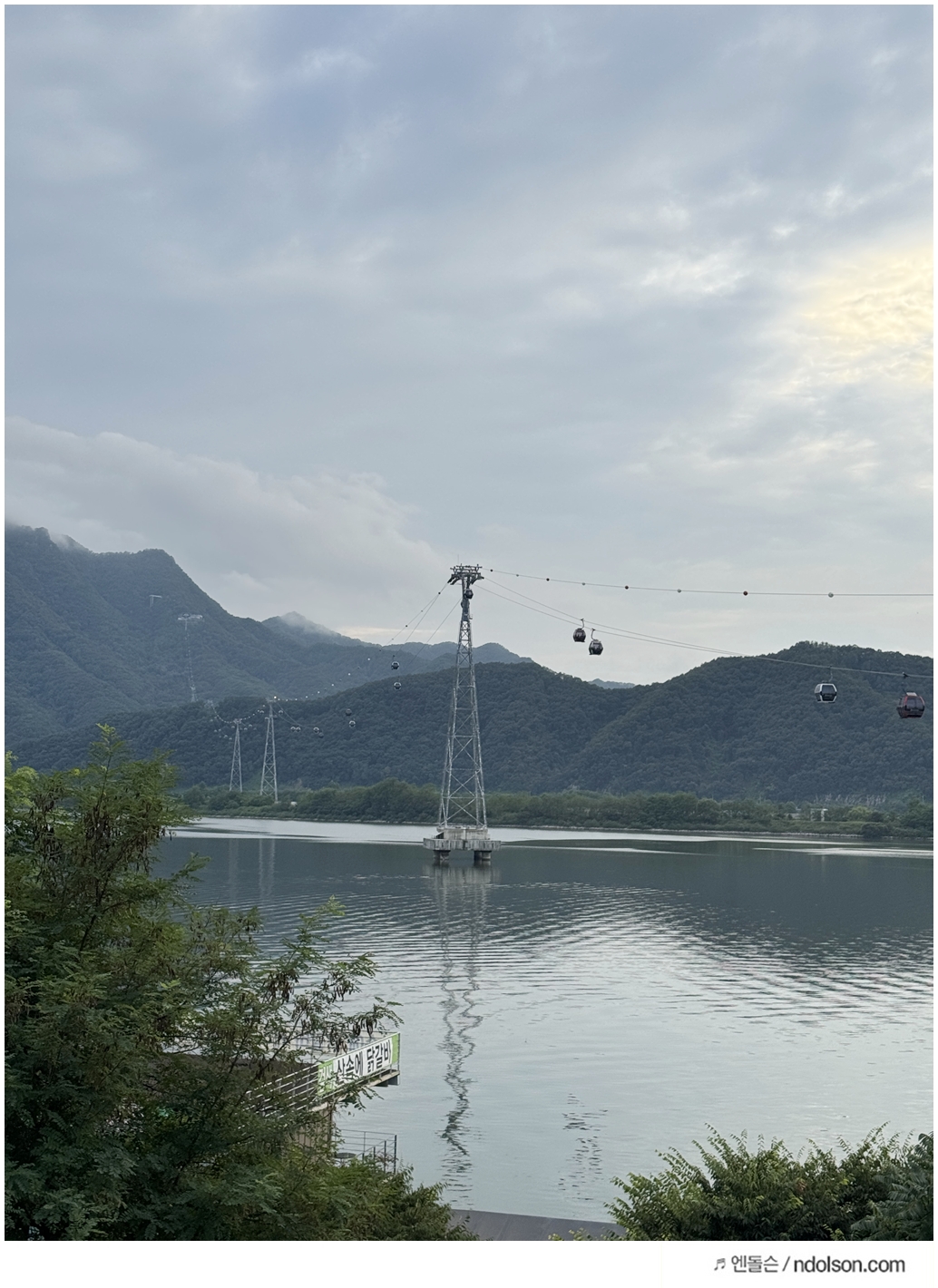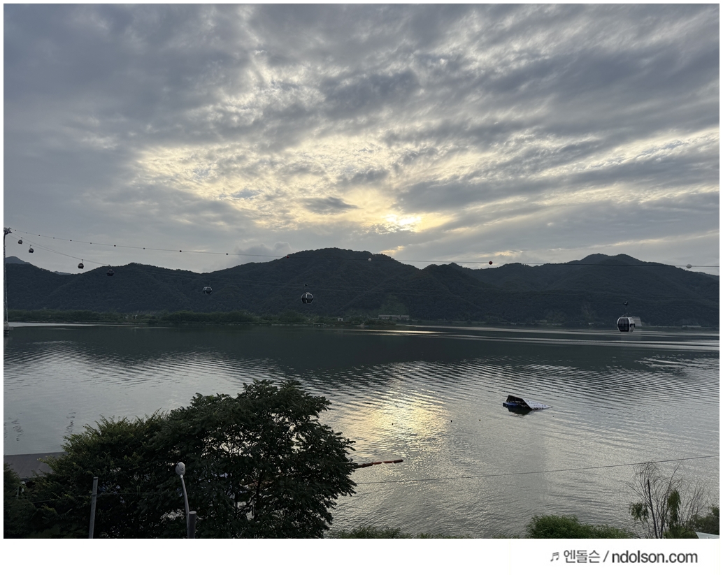 의암호 호수뷰가 너무 좋았는데요. 삼악산 케이블카가 너무 멋집니다. 의암호 스타벅스 옆에 바로 삼악산 케이블카가 있어요.