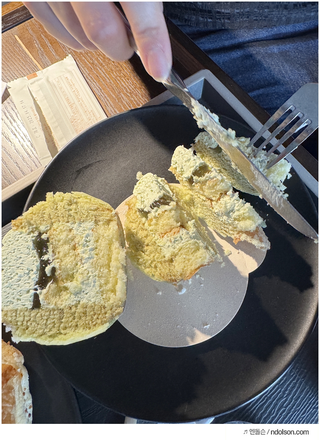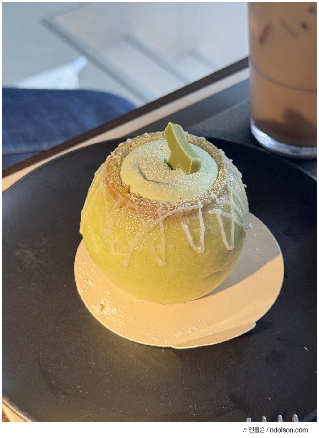 이곳만의 시그니처 메뉴도 놓칠 수 없는 포인트입니다. 저는 의암호 라벤더 티 라떼를 주문했는데, 은은한 라벤더 향이 인상적이었고, 딸아이는 초록빛자몽피지오를 시켜줬더니 상큼한 맛에 완전 만족했어요. 특히 한정 디저트류는 완성도가 높아 미디어 아트와 함께 즐기기에 완벽했습니다. 딸아이가 좋아하는 크루아상도 있어서 간식으로 함께 주문했네요.