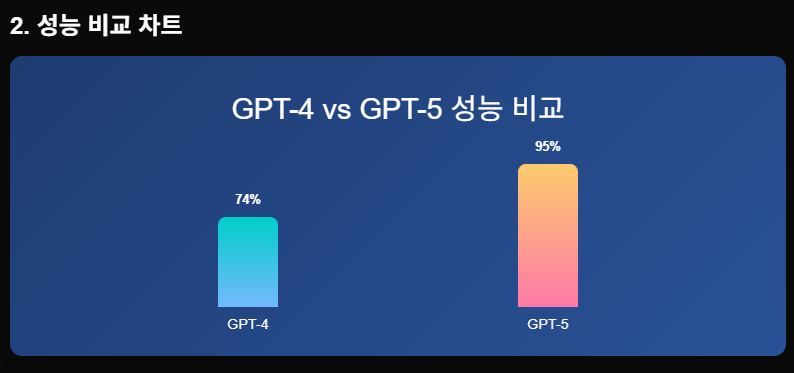 실제 성능 데이터를 보면 GPT-5의 발전이 확실히 드러납니다.