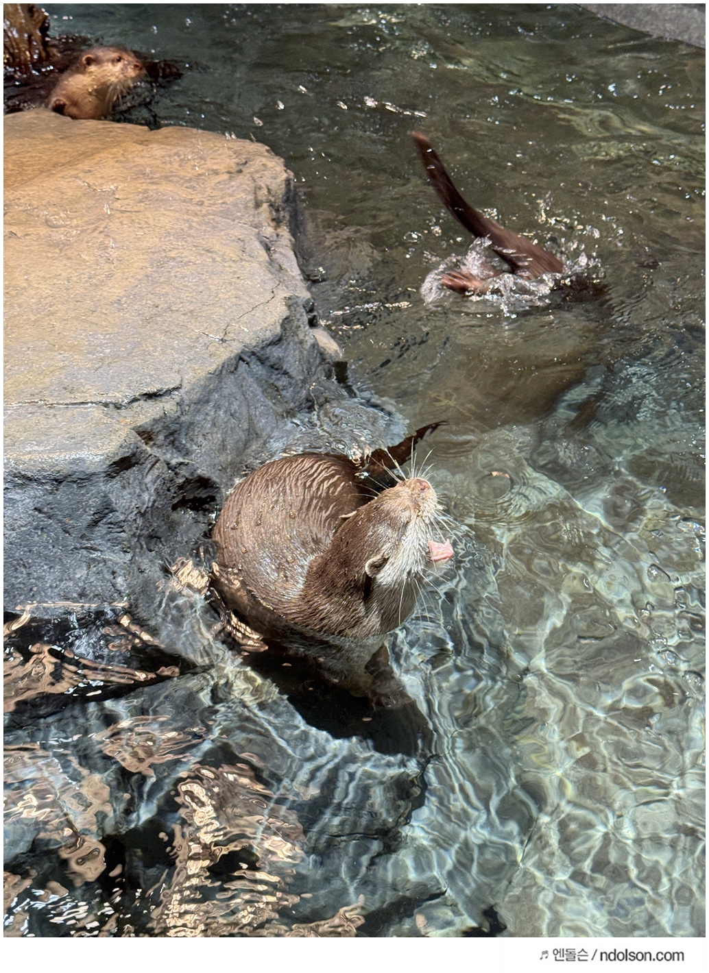 동물원에 들어서자마자 가장 먼저 눈에 띈 건 수달이었어요. 정말 말로 표현할 수 없을 정도로 귀여웠어요! 물속에서 뒤집어지며 노는 모습이 마치 살아있는 인형 같더라고요. 딸아이도 수달 앞에서 한참 동안 떠나질 않았어요. "엄마, 저거 진짜야? 너무 귀여워!" 하면서 계속 감탄사를 연발하더라구요.
