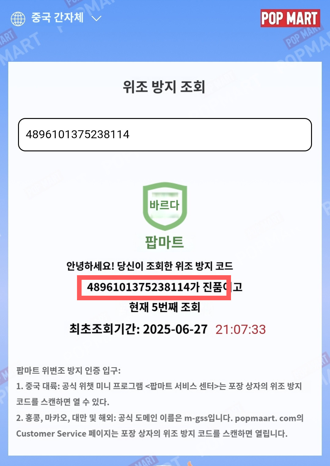 이렇게 라부부 인형의 진품 여부를 확인할 수 있습니다.