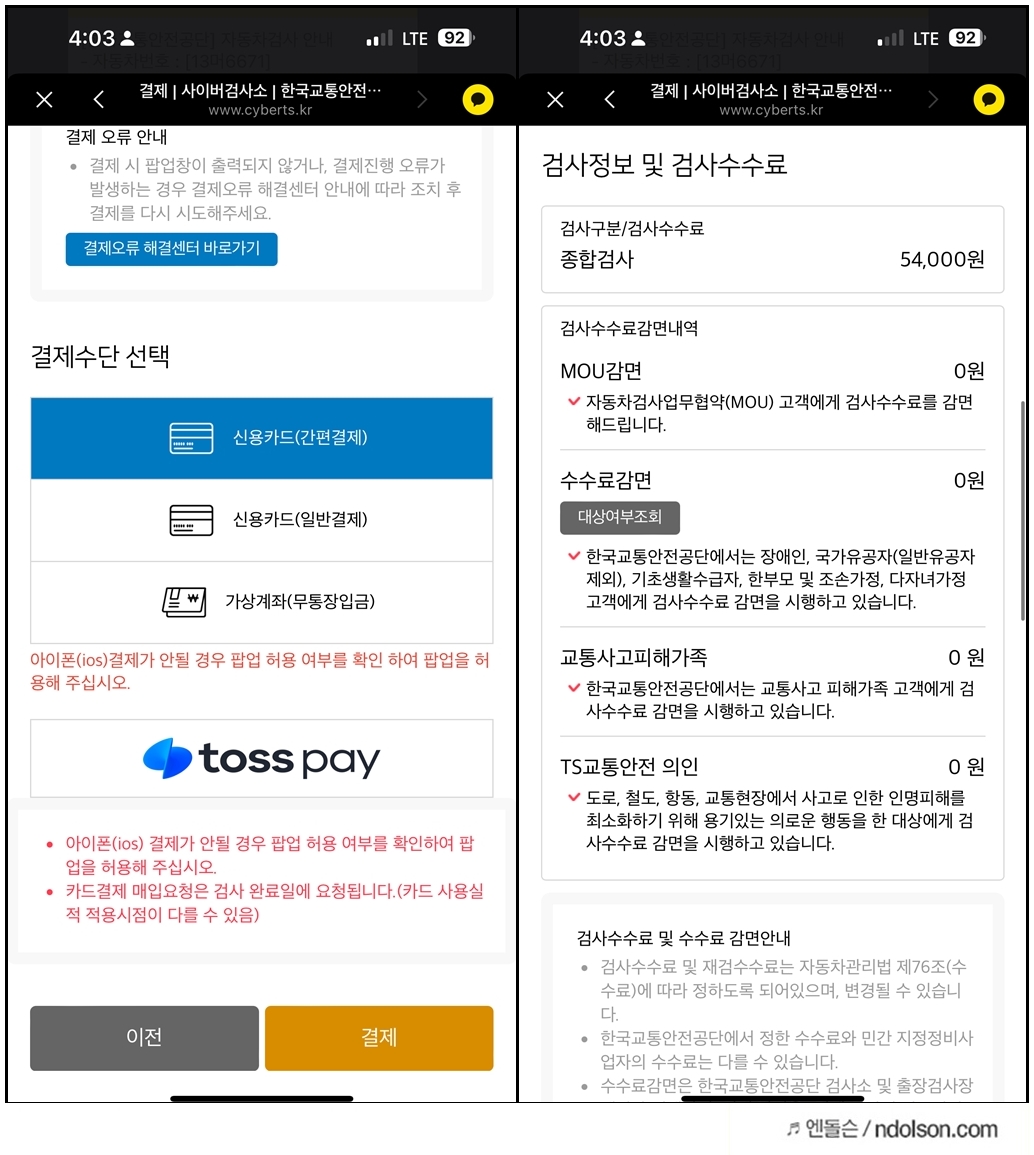 실제 자동차 검사비 결제가 끝나면 예약이 됩니다.