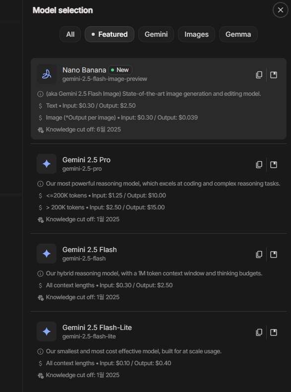 → “New Chat” → “Generate Images” 메뉴에서 나노바나나 모델 선택 후 사용 - 공식 체험 페이지: https://nanobanana.ai/ko