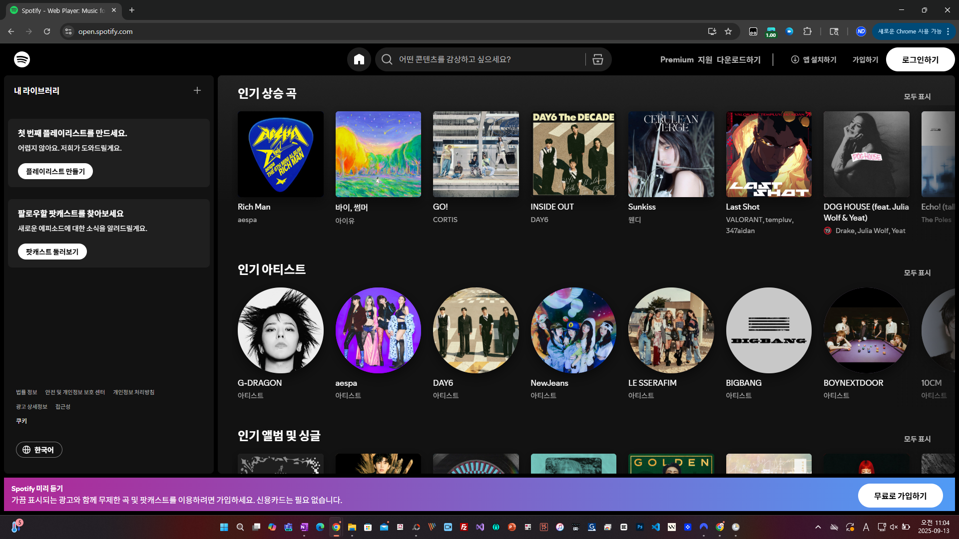 최신 한국 음악도 바로 들을 수 있다는 게 매력인데요. 요즘 스포티파이에서 많이 듣는 곡들을 예로 들면, ATEEZ의 〈Lemon Drop〉, 아이유의 〈Never Ending Story〉, 제이홉과 GloRilla의 협업곡, ITZY의 〈Girls Will Be Girls〉, 진(Jin)의 〈Don’t Say You Love Me〉 같은 인기곡들이 플레이리스트 상위권에 올라 있습니다. K-pop부터 글로벌 팝까지 한 번에 즐길 수 있는 게 스포티파이만의 강점이죠.