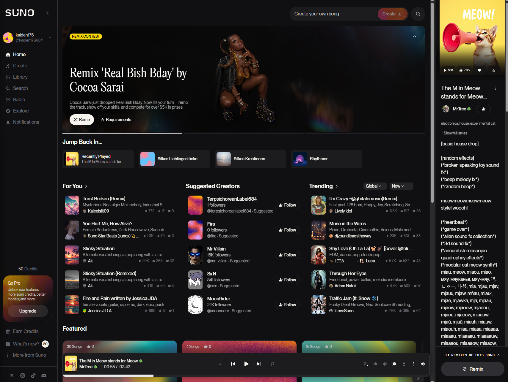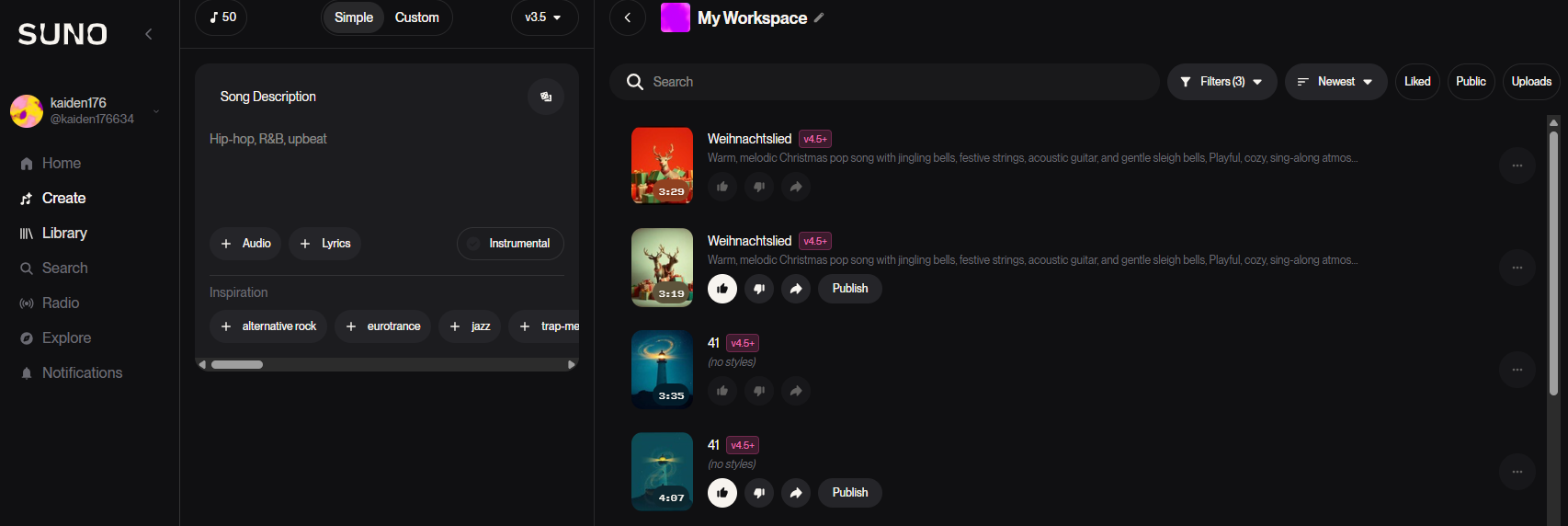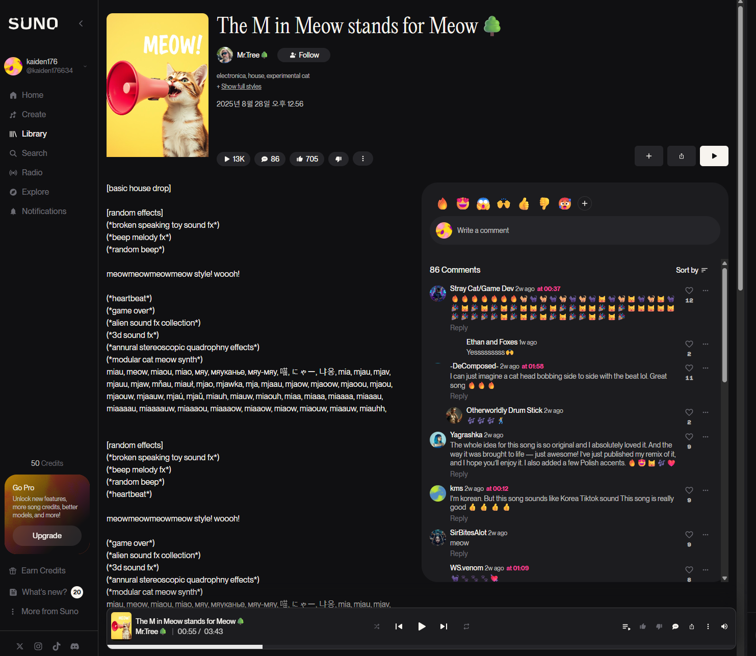 - 무료 버전: 저작권은 Suno AI에 귀속 → 상업적 이용 불가.