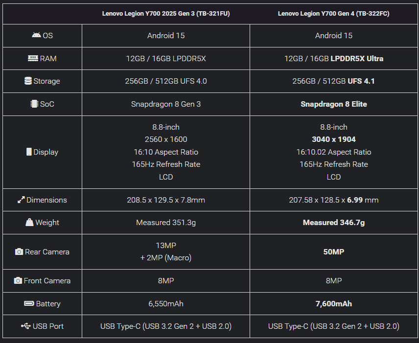 레노버 Y700 4세대는 8.8인치 16:10 화면비에 3040×1904 해상도, 408ppi의 선명도를 제공합니다.