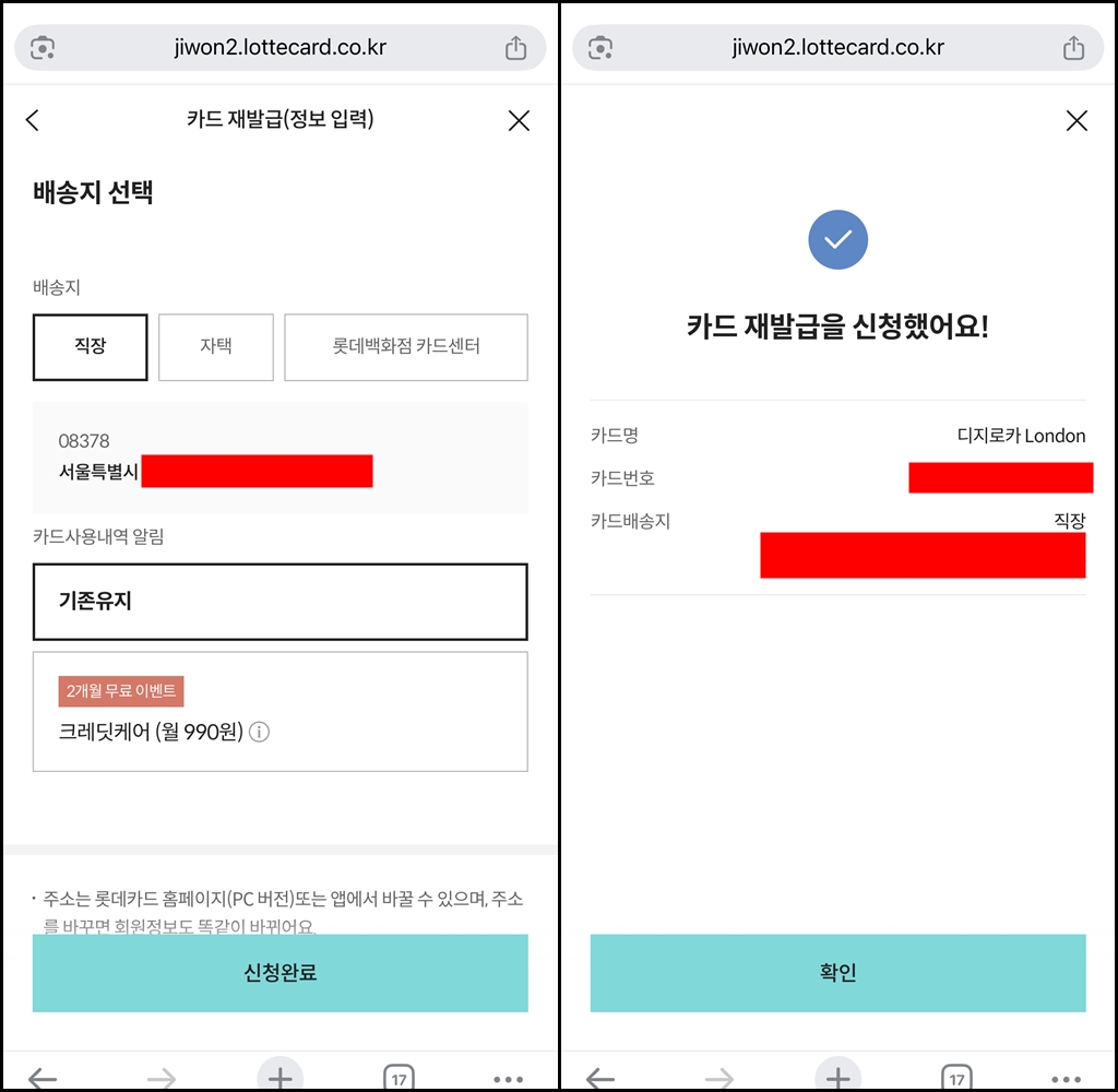 롯데카드 개인정보 유출 카드 재발급 신청했네요