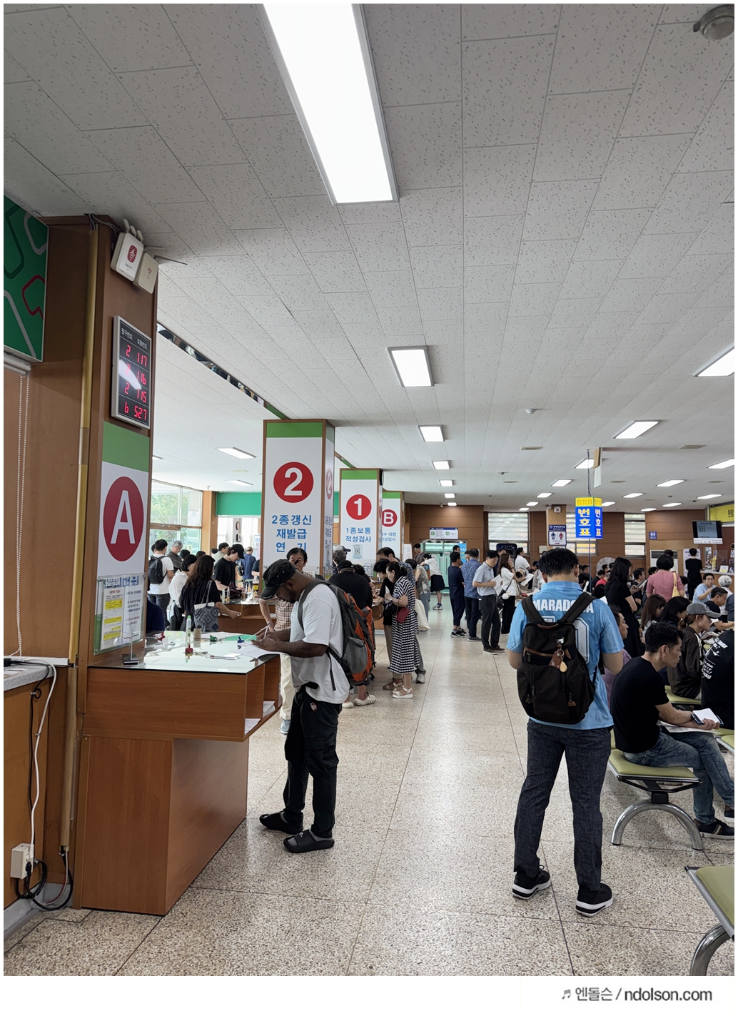 들어가자마자 A코너에서 번호순번을 뽑습니다. 그래야 빨리 됩니다. 어차피 기다리는 사람들이 많아요.