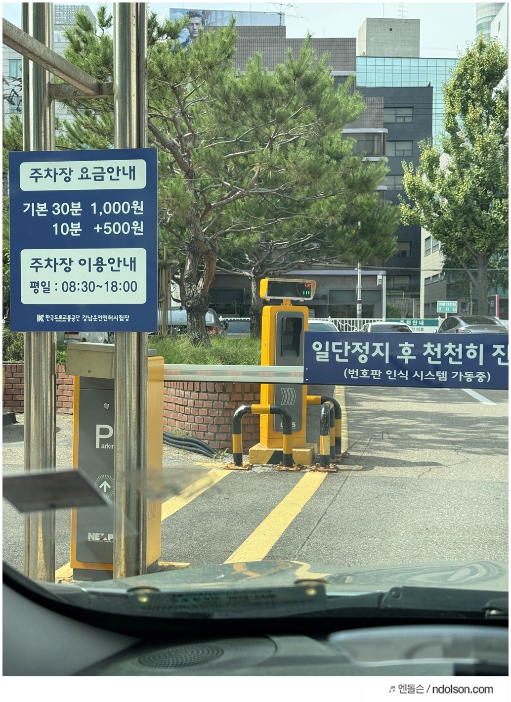 서울 강남 운전면허 시험장 주차장의 주차 요금은 평일 8:30 ~ 18:00 운행하며 기본 30분 ~1천원이 나옵니다.