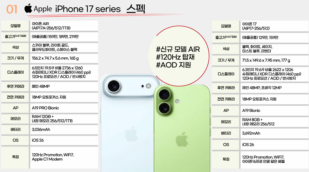 아이폰 17 시리즈가 공개되면서 주목받은 모델 중 하나가 바로 아이폰 17 에어(iPhone 17 Air)입니다. 애플은 이번 세대에서 성능과 가격의 균형을 맞춘 모델을 내세우며, 플래그십과 기본 모델 사이에 새로운 선택지를 마련했습니다.