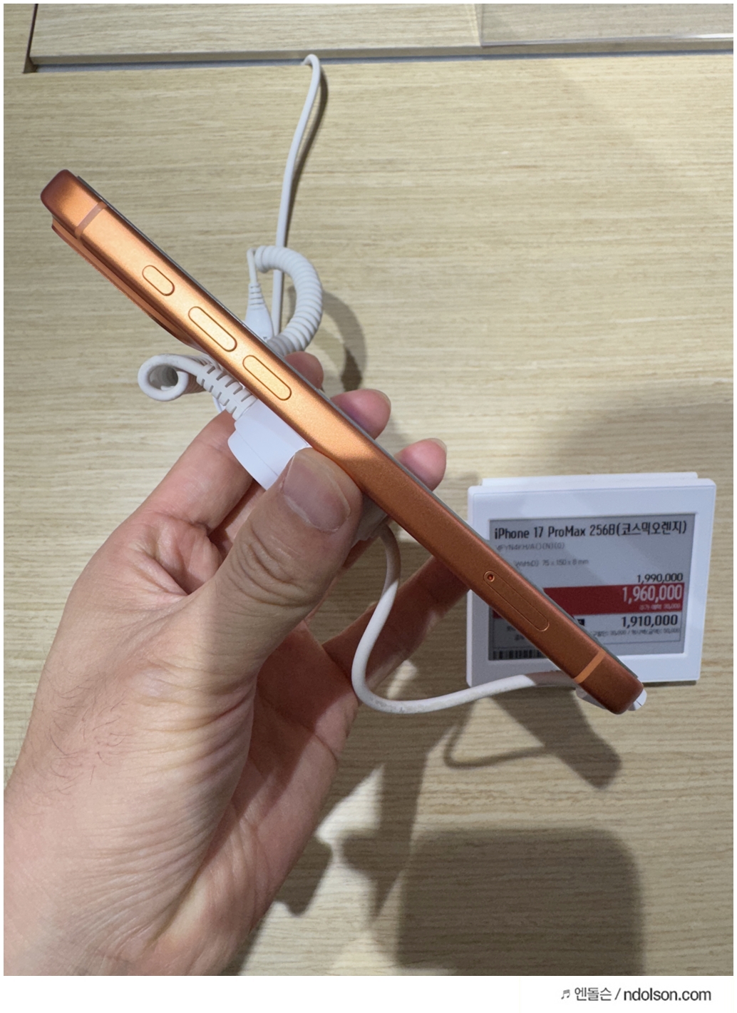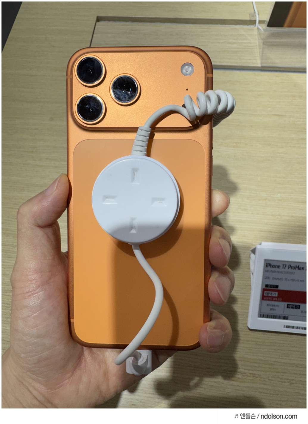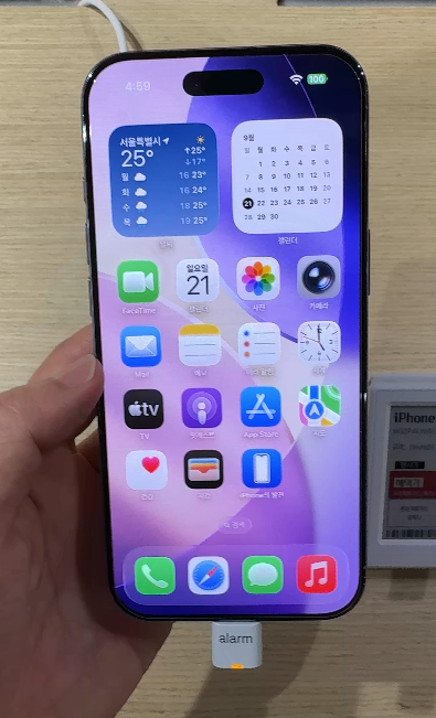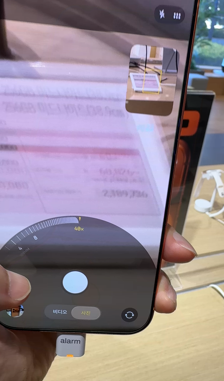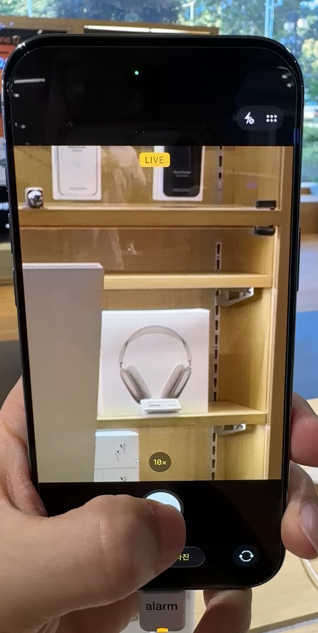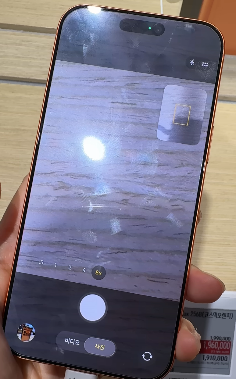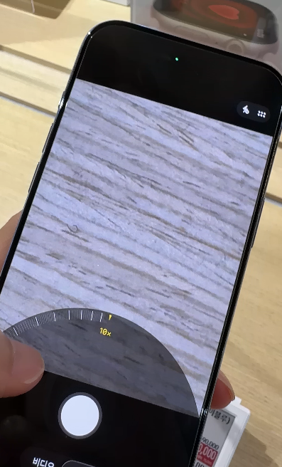 체험존에서 프로 맥스로 멀리 떨어진 가격표와 작은 전시물들을 촬영해 보니, 기본 모델과는 비교가 되지 않을 만큼 선명했습니다. 특히 8배 광학 줌에서도 글자 선이 뚜렷하게 보였고, 디지털 줌 30배 수준에서도 사진을 활용할 수 있을 정도의 품질이 유지되었습니다. 저조도 환경에서도 흔들림이 적고, 색감 역시 안정적으로 표현되어 야간 촬영에서 강점을 발휘할 것으로 보였습니다.