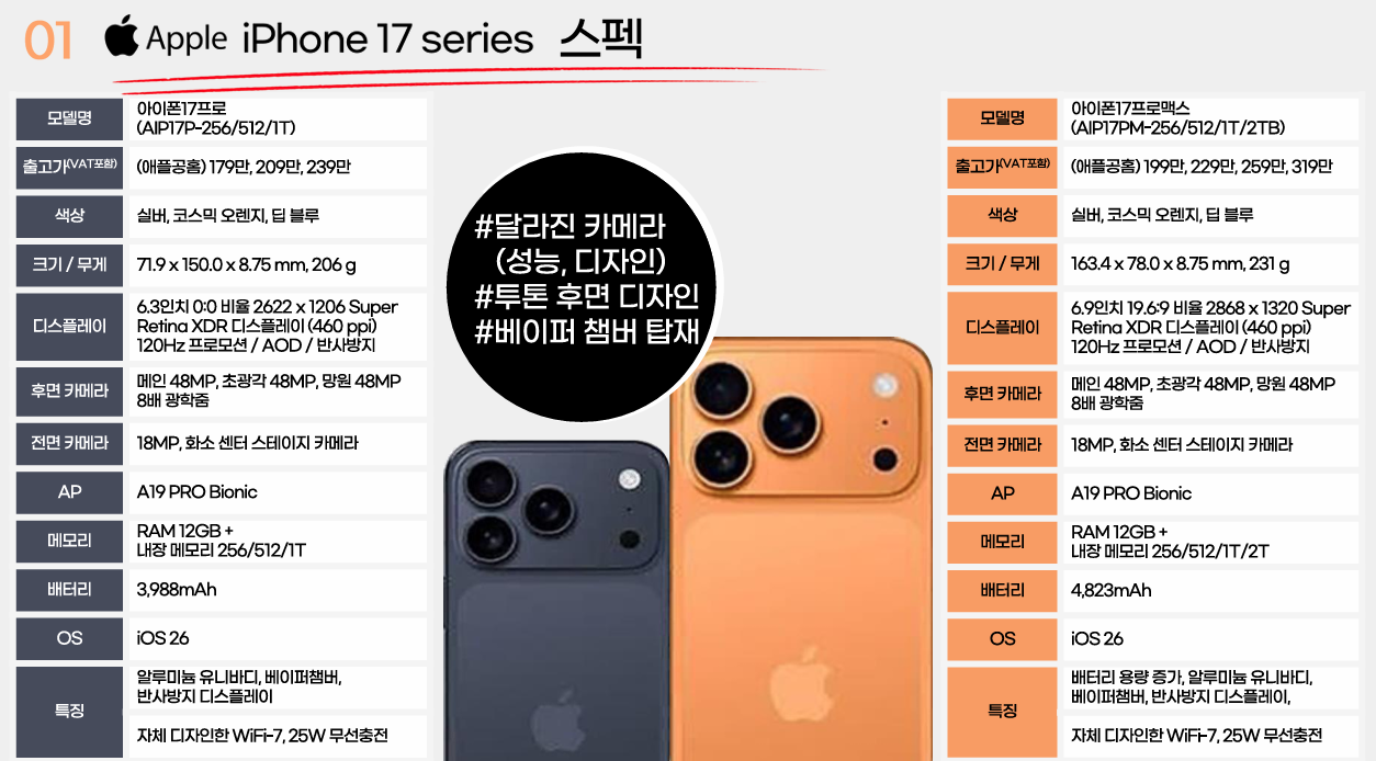 아이폰 17 에어 프로 맥스 시리즈 카메라 최대 망원 되는 기본 모델 vs 프로 맥스 차이 비교