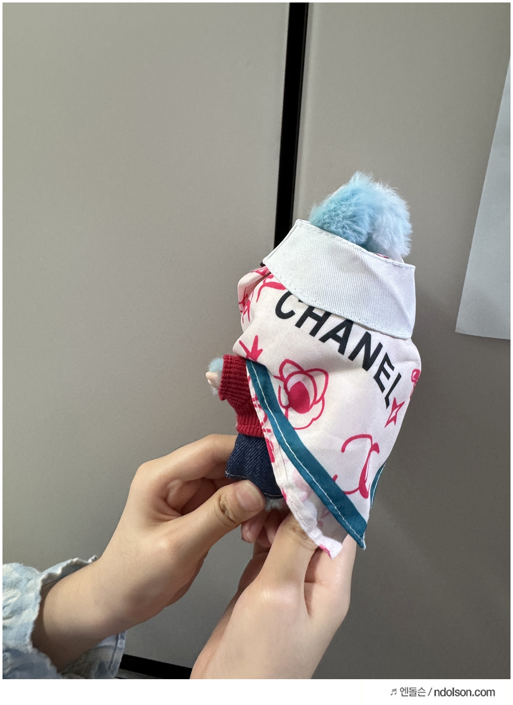 의상은 스카프와 상·하의, 그리고 포인트 소품까지 포함된 세트로 구성되어 있어 완성도가 높았습니다. 특히 스카프는 단순한 액세서리 이상의 역할을 하며 인형의 분위기를 확 바꿔 주었습니다.