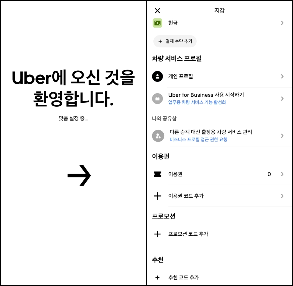 우버 할인코드 또는 우버 프로모션 코드 구하는 게 조금 힘듭니다. 지갑에 추가해서 넣으면 됩니다.