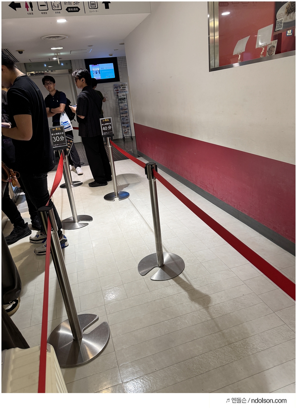 이곳은 워낙 인기가 많아서 대기 줄이 길었습니다. 약 30~40분 정도 기다렸는데, 신기하게도 가게 앞에는 대기 시간 안내판이 있어서 "지금 줄서면 30분 남음" 같은 표시가 나와요.