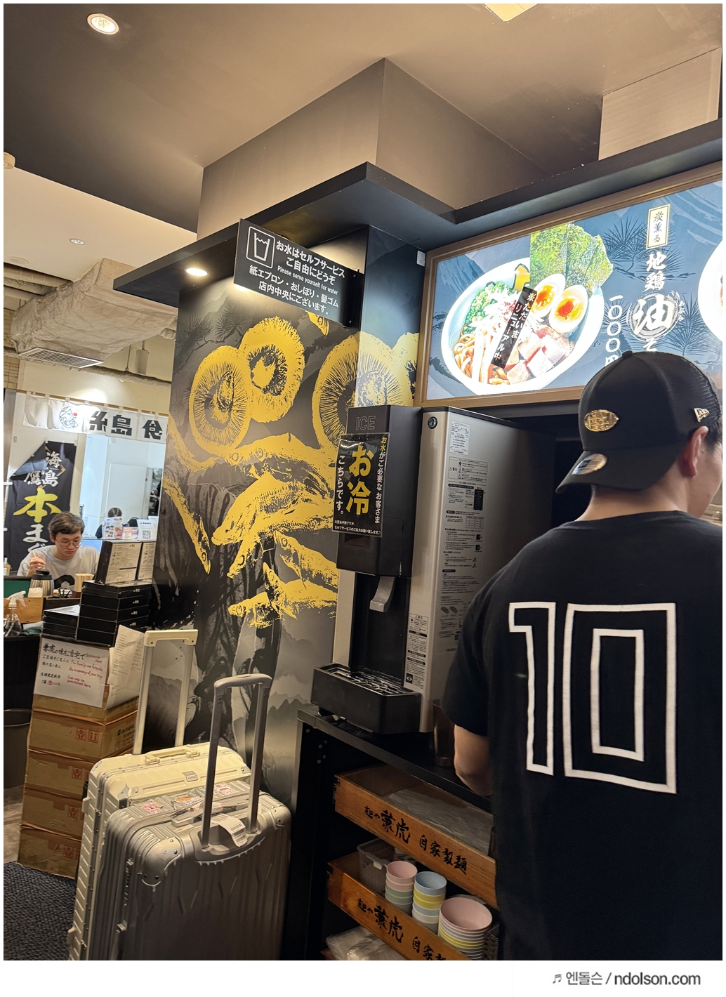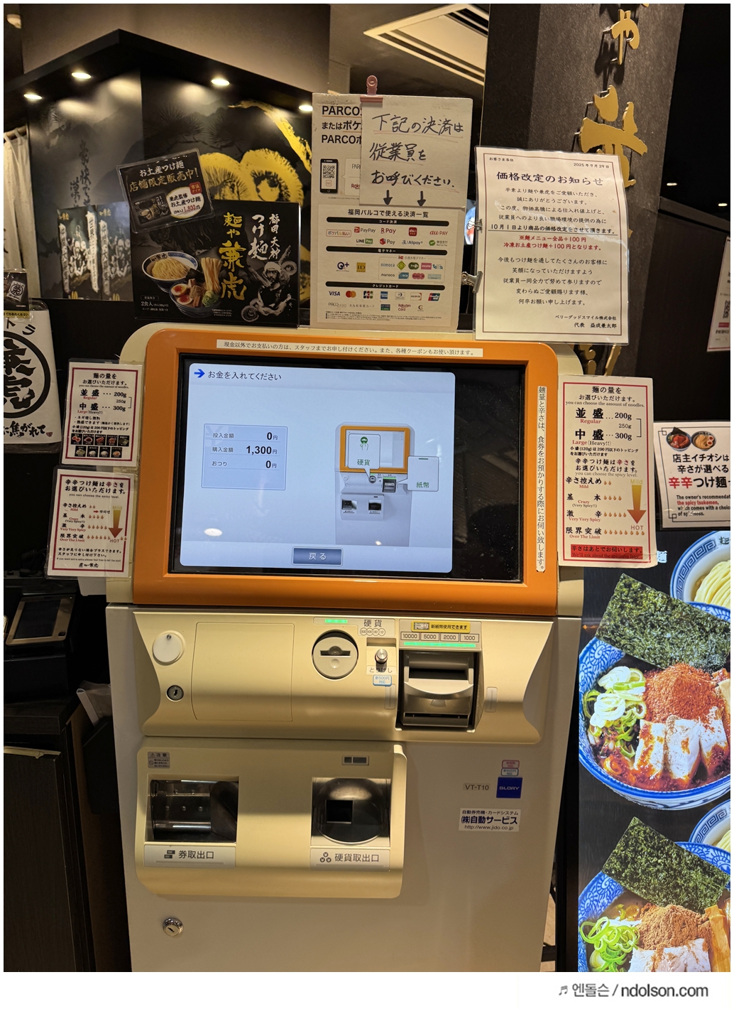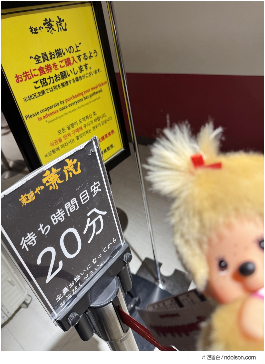 일본의 세심함을 느꼈죠. 또 재밌었던 건, 줄을 먼저 서는 게 아니라 식권 자판기에서 미리 표를 구매해야 한다는 점이에요. 한글 안내문이 있어서 어렵지 않았습니다. 표를 뽑고 나서 기다리는 시스템이라 효율적이었어요.