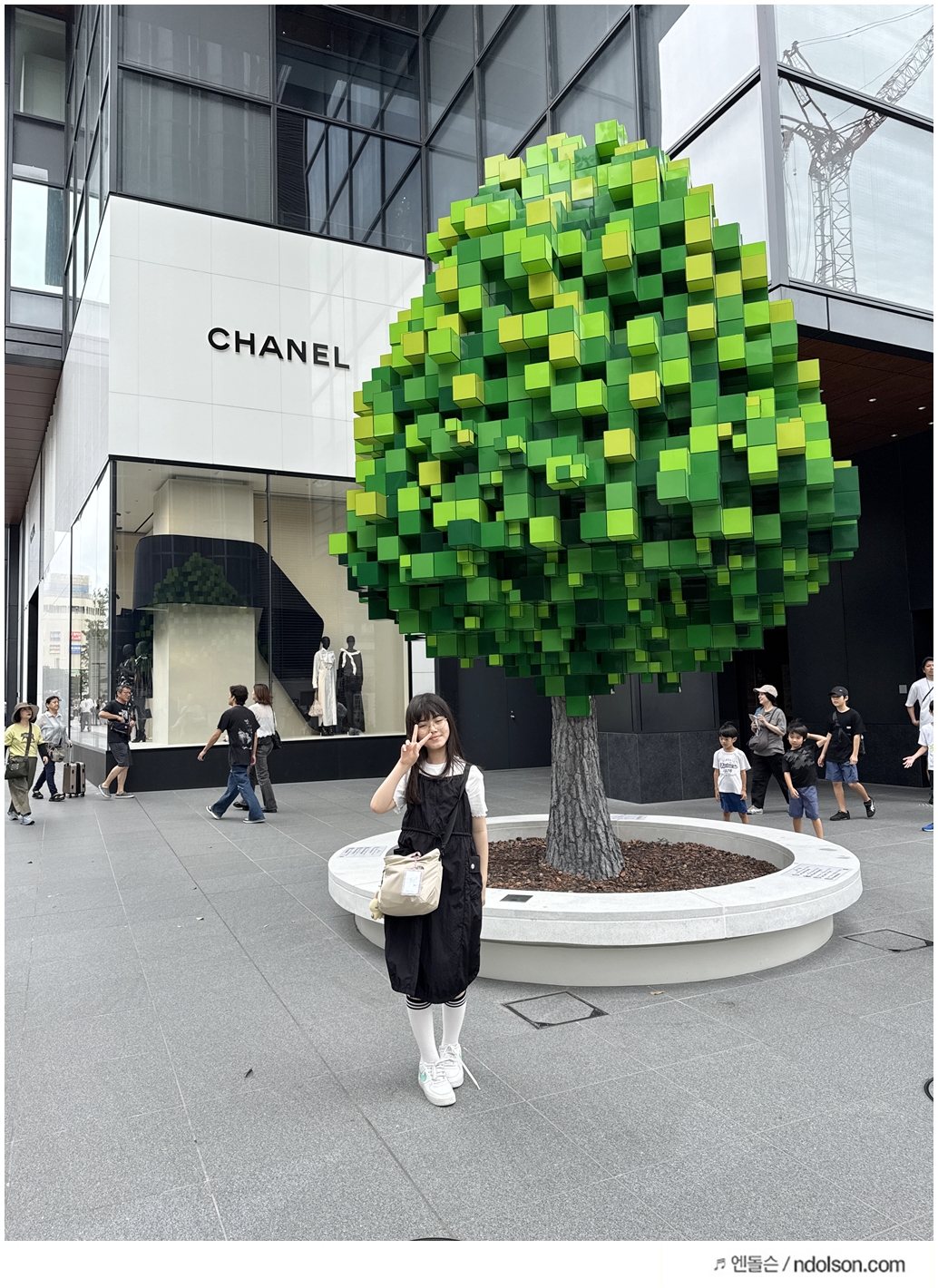 이번 후쿠오카 여행 중 가장 인상 깊었던 장소 중 하나가 바로 원 후쿠오카 빌딩(One Fukuoka Building)과 그 앞의 ‘픽셀나무(Pixel Tree)’였습니다. 딸아이가 마인크래프트를 좋아해서인지, 이곳을 보자마자 “마크 나무다!”라고 외치며 너무 좋아하더군요. 가까이서 보면 정말 시멘트로 만든 조형물인데, 마치 픽셀 그래픽을 3D로 구현한 듯한 묘한 매력이 있습니다.