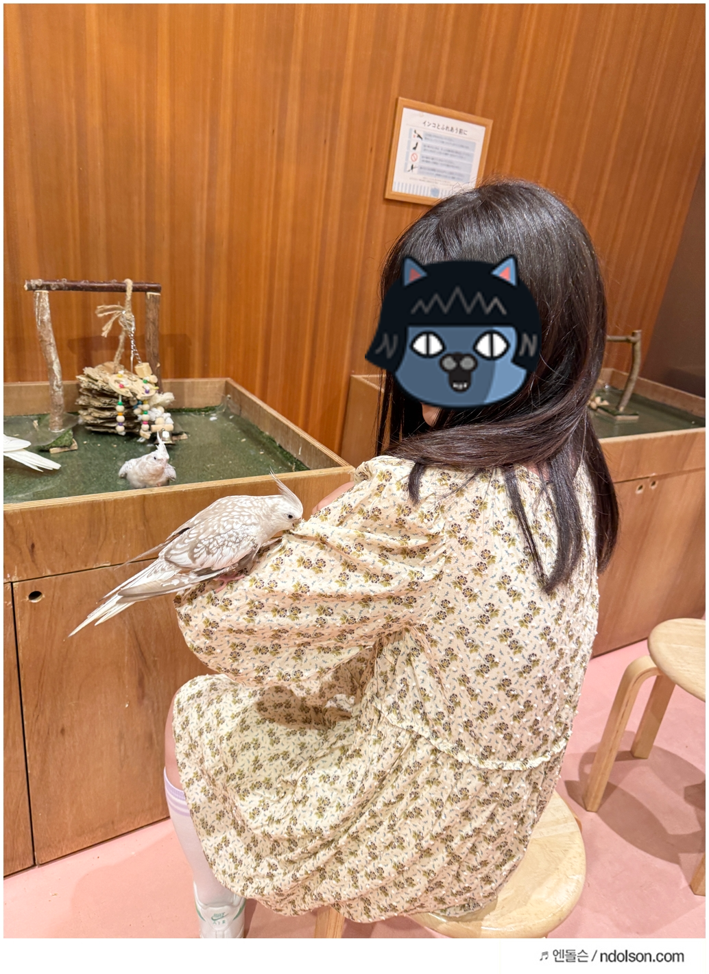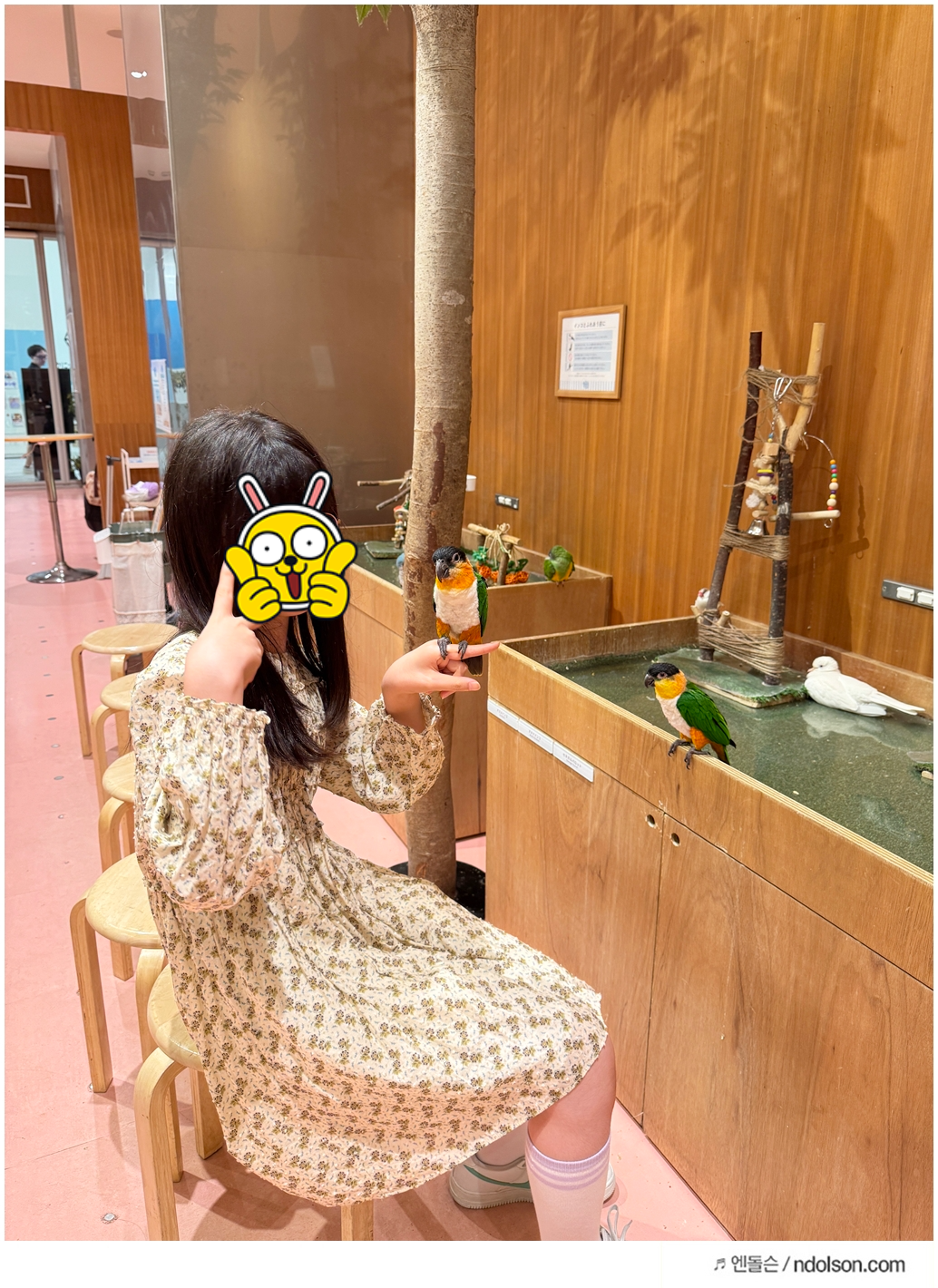 예전에는 시간 제한이 없었지만, 최근에는 방문객이 많을 경우 90분 제한제로 운영된다고 안내받았습니다. 다행히 저희가 방문한 날은 평일이라 시간 제한 없이 천천히 체험할 수 있었습니다. 일부 특별 체험(예: 앵무새 운세 뽑기, 나무늘보 인증샷)은 별도 요금이 발생합니다. 딸아이는 앵무새 운세를 뽑았는데, 작은 새가 직접 종이를 물고 나와주는 모습이 너무 귀여웠습니다.