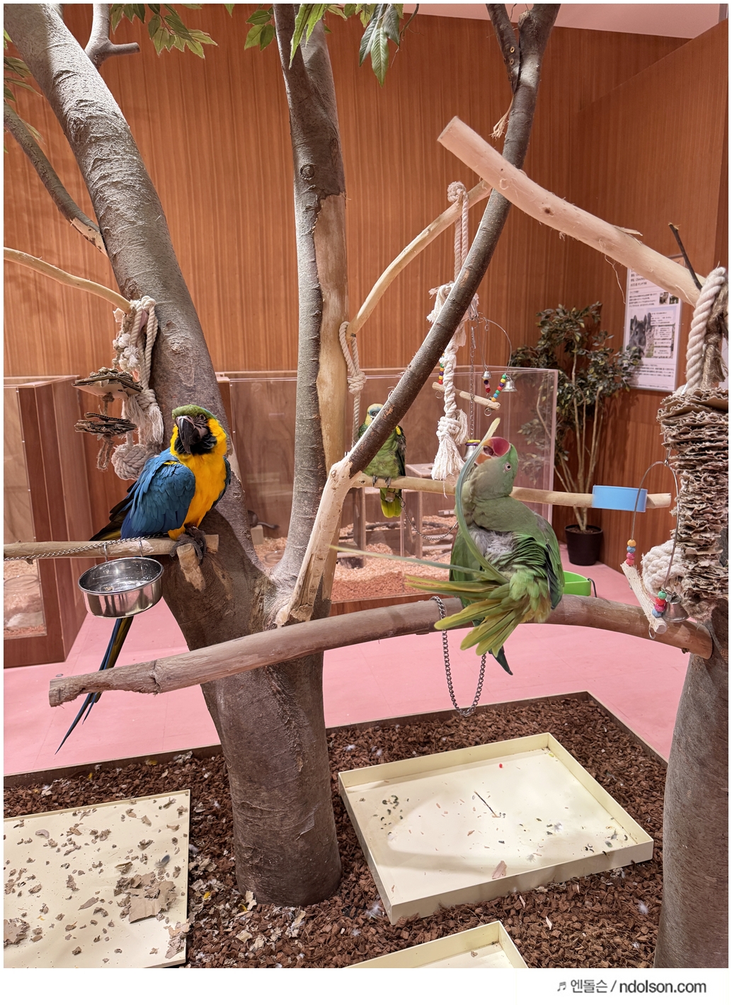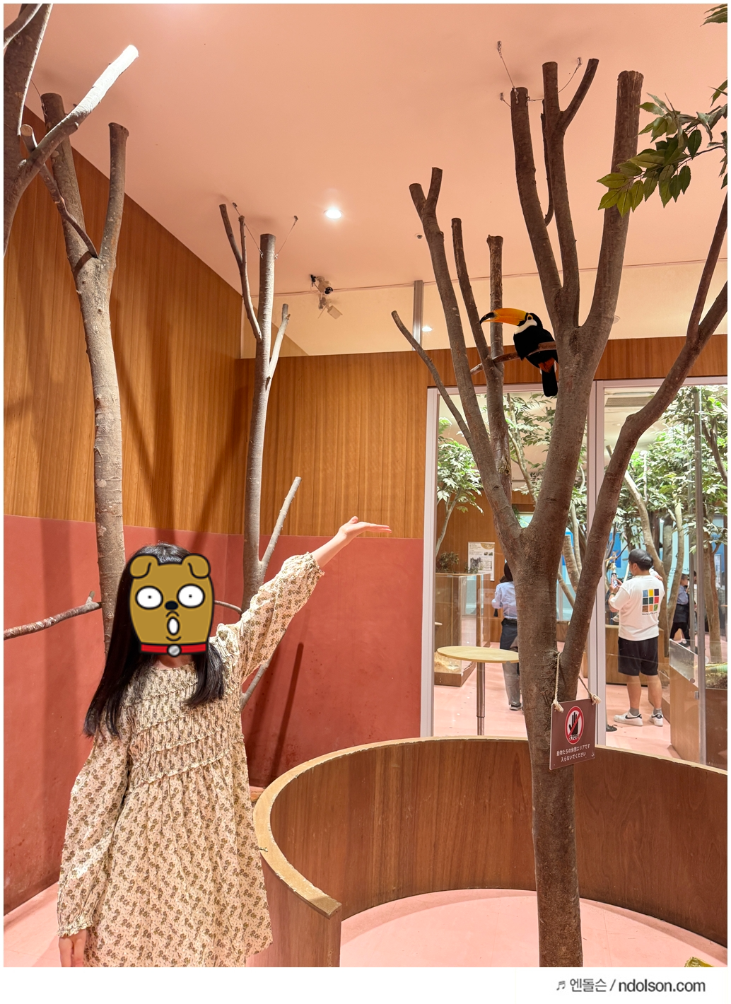 특히 저희 가족은 평소 사랑앵무새를 키우고 있어서인지, 앵무새 존에서 오랜 시간을 보냈습니다. 딸아이는 손 위에 앵무새를 올리고 먹이를 주며 무척 즐거워했습니다.