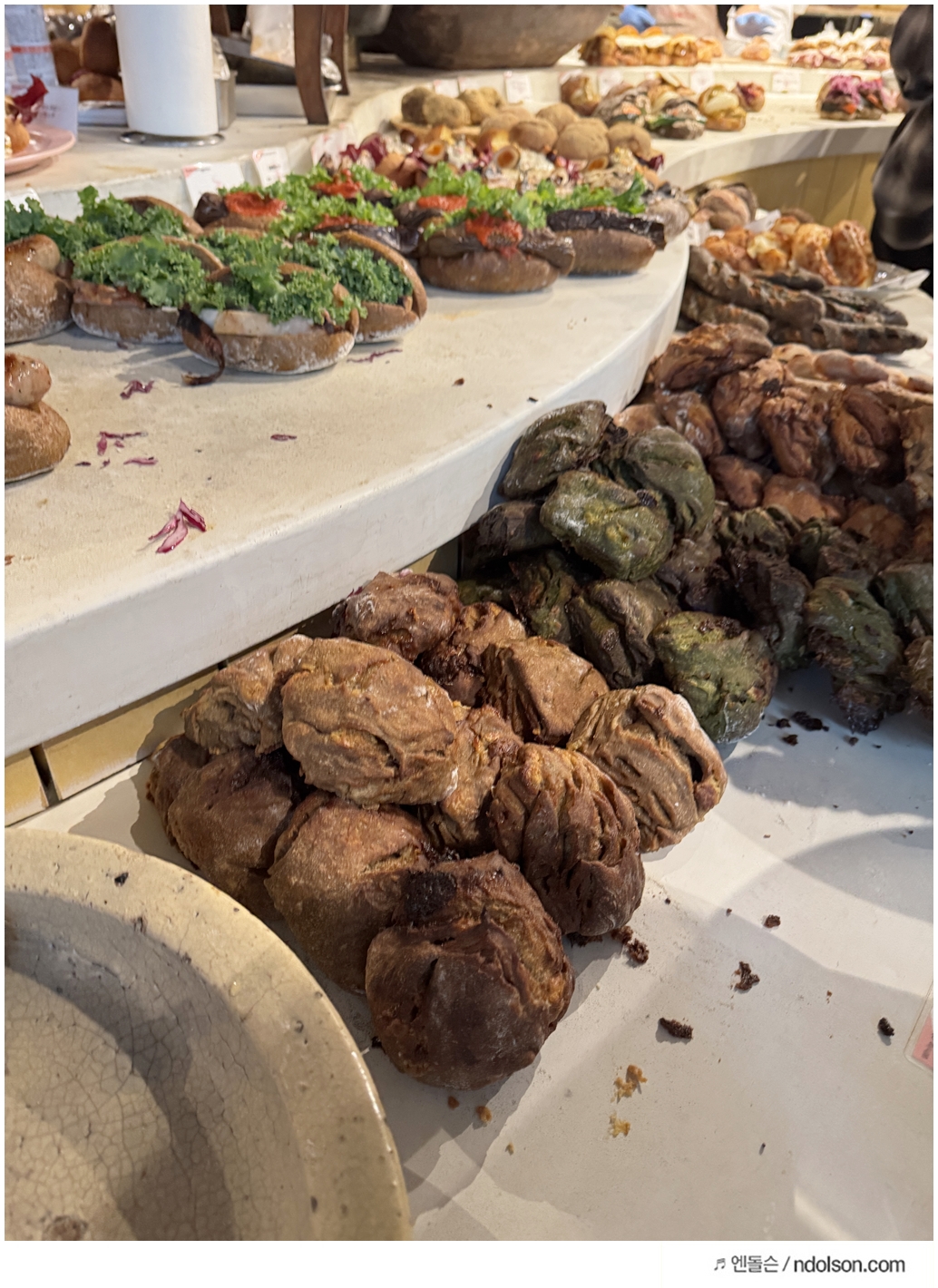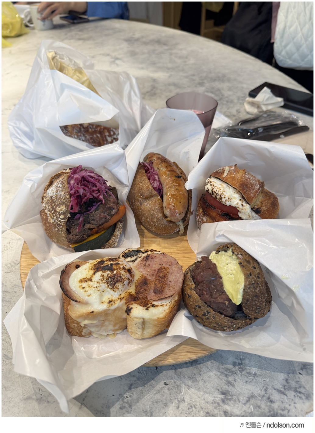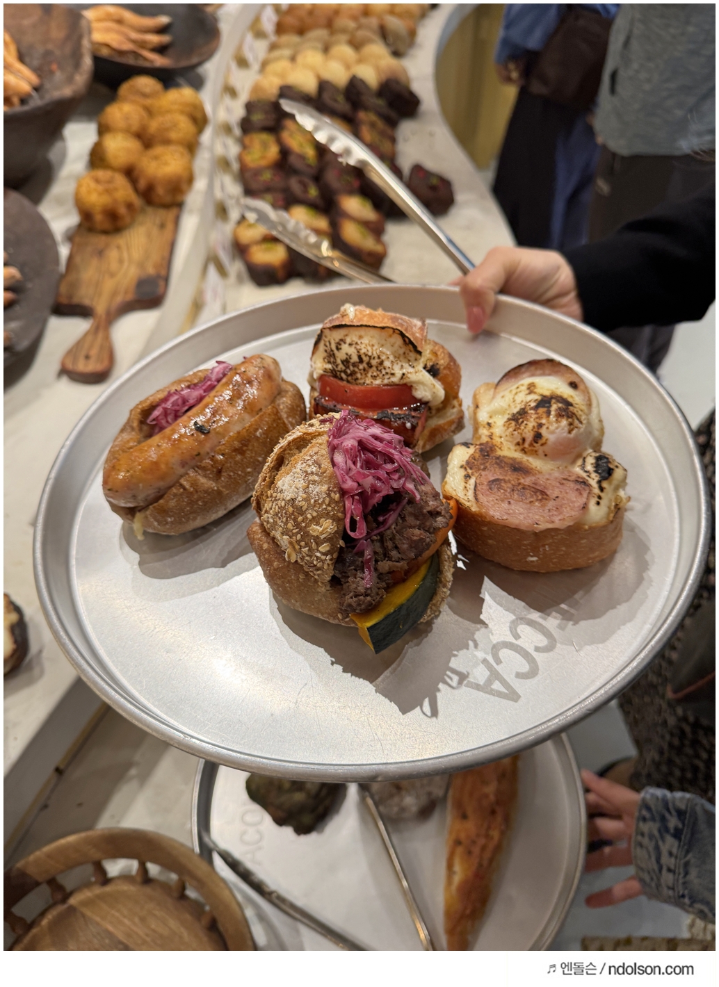 제가 제일 맛있게 먹은 건 숯불 소시지 빵이었습니다. 겉은 바삭하고 속은 부드럽고, 숯불 향이 은은하게 배어 있어서 먹는 내내 입안 가득 풍미가 느껴졌습니다. 불에 직접 구워내는 방식이라 고소한 향이 남다릅니다. 또, 리코타 베이컨 빵도 고소하고 짭짤한 풍미가 일품이라 함께 추천드리고 싶습니다.