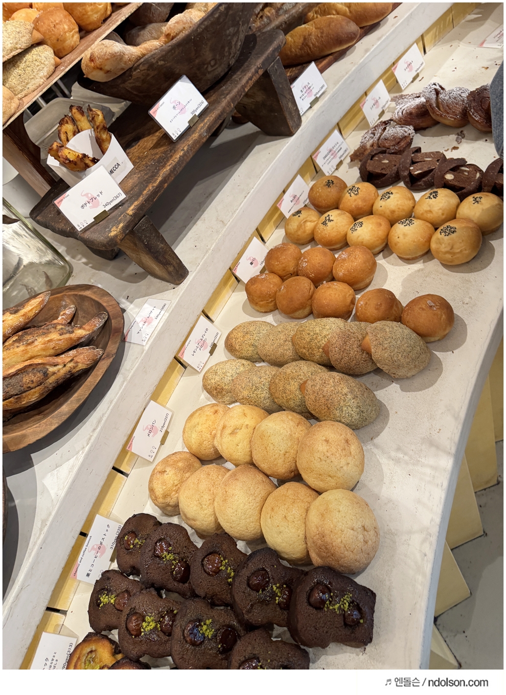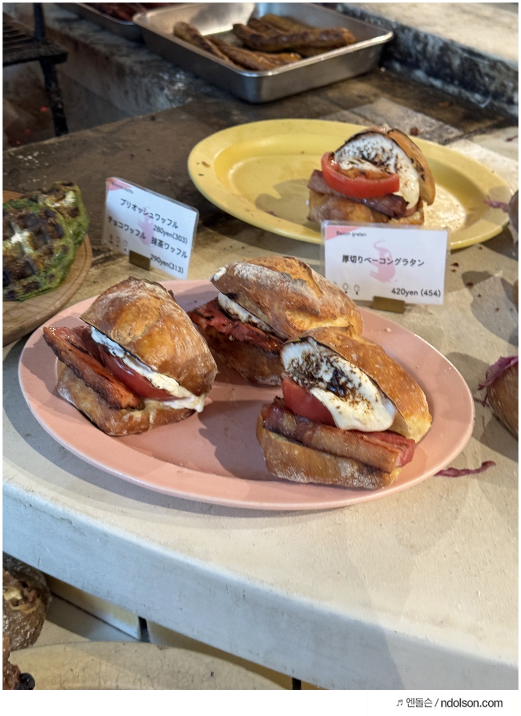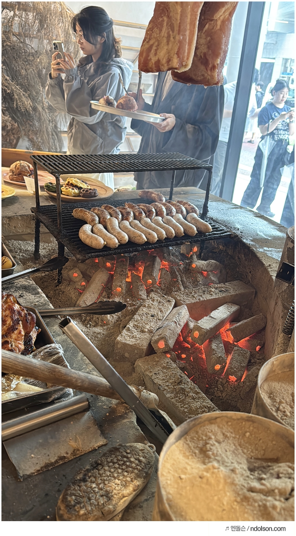 제가 제일 맛있게 먹은 건 숯불 소시지 빵이었습니다. 겉은 바삭하고 속은 부드럽고, 숯불 향이 은은하게 배어 있어서 먹는 내내 입안 가득 풍미가 느껴졌습니다. 불에 직접 구워내는 방식이라 고소한 향이 남다릅니다. 또, 리코타 베이컨 빵도 고소하고 짭짤한 풍미가 일품이라 함께 추천드리고 싶습니다.