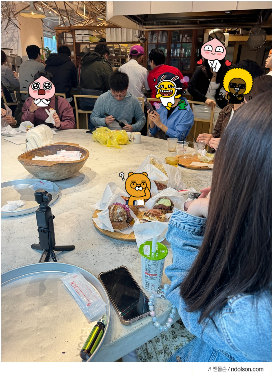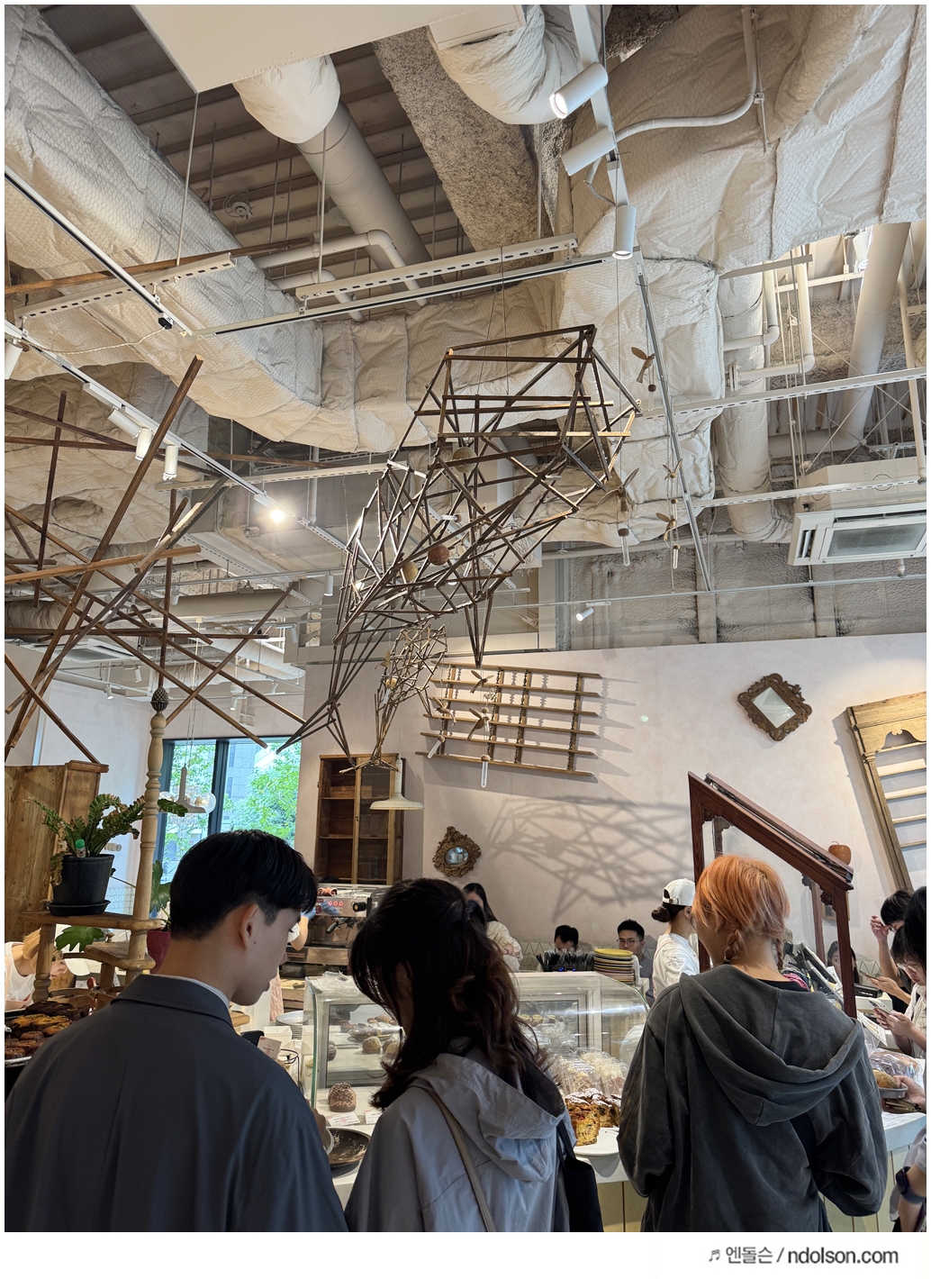 매장은 밝고 따뜻한 나무톤 인테리어로 꾸며져 있습니다. 손님이 많아 좌석이 조금 협소하지만, 회전율이 빠른 편이라 잠시 기다리면 자리를 잡을 수 있습니다. 따뜻한 조명과 갓 구운 빵 냄새 덕분에 편안한 분위기에서 아침을 즐길 수 있었습니다.