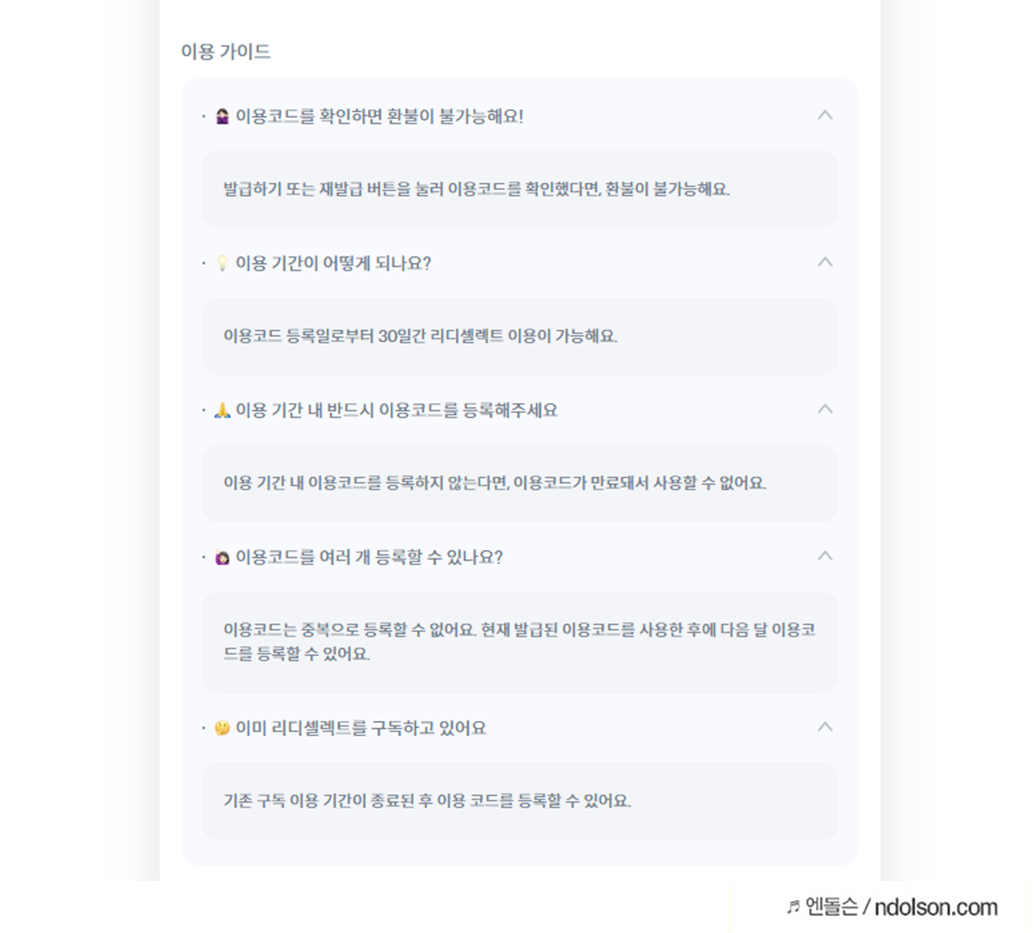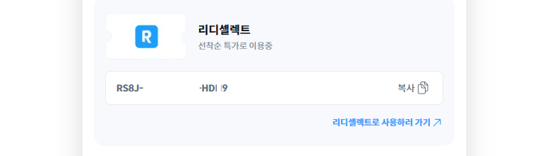 리디셀렉트 사용법 - 이용코드 등록 방법